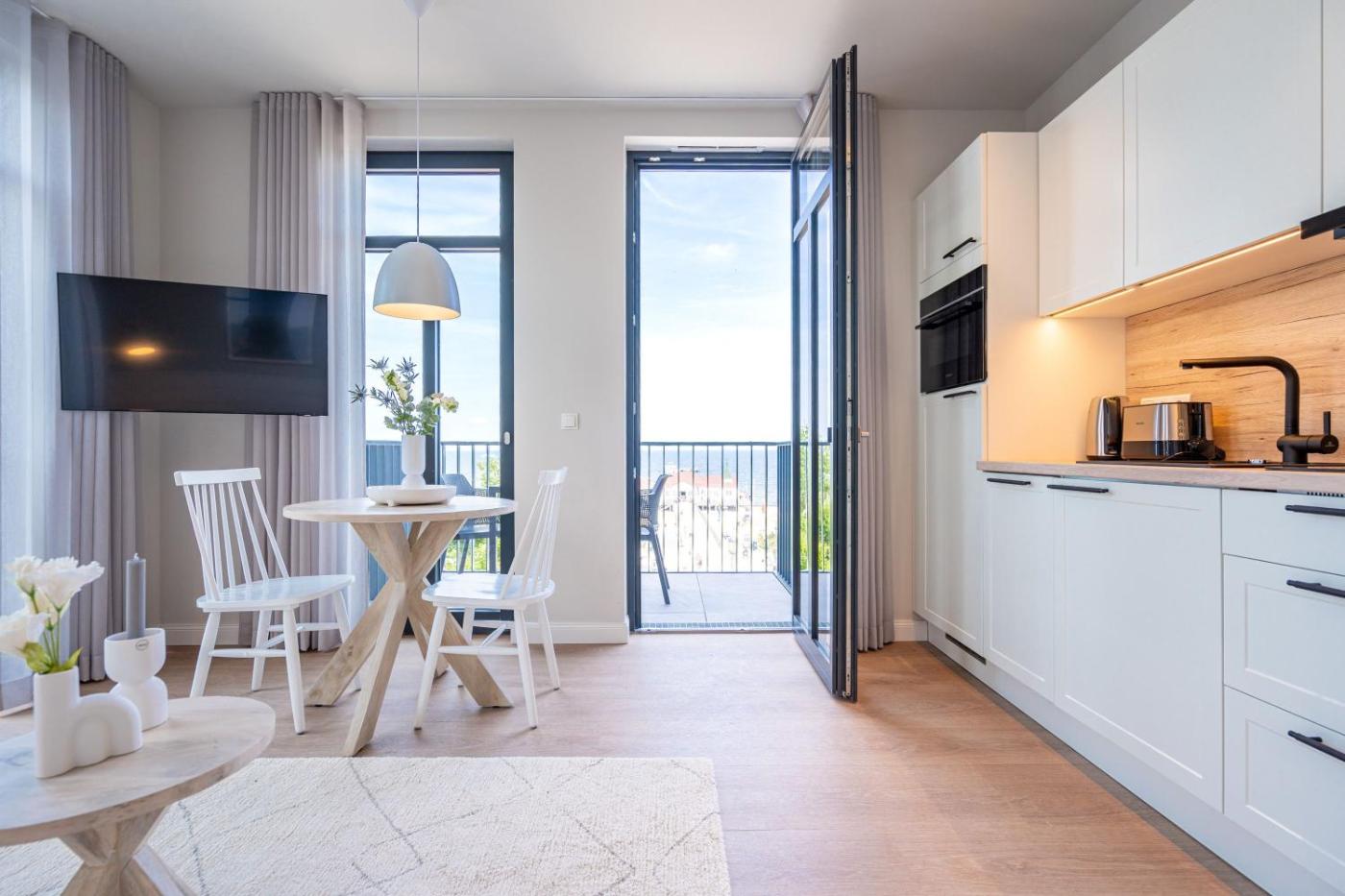 One-Bedroom Apartment with Balcony. This apartment consists of 1 bedroom, a kitchenette and 1 bathroom with a shower and a hairdryer. The fully equipped kitchenette features a refrigerator, a dishwasher, an oven and a toaster. Featuring a balcony with sea views, this apartment also provides a washing machine and a flat-screen TV. The unit offers 1 bed.