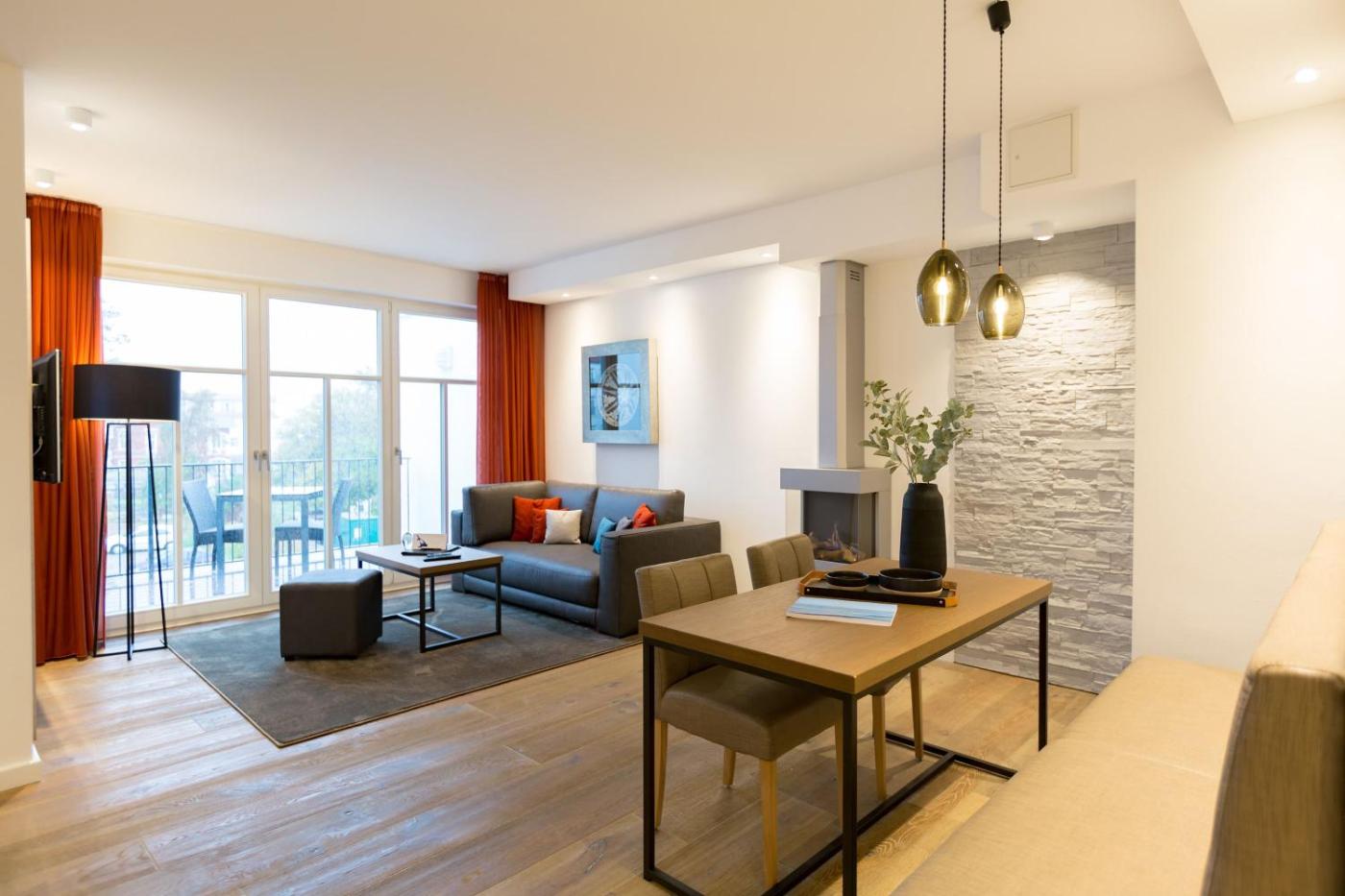 One-Bedroom Apartment with Balcony. The fireplace is the standout feature of this apartment. This apartment features 1 living room, 1 separate bedroom and 1 bathroom with a shower. Meals can be prepared in the kitchenette, which has a refrigerator, a dishwasher, an oven and a microwave. Boasting a balcony with sea views, this apartment also features a coffee machine and a flat-screen TV. The unit has 1 bed.