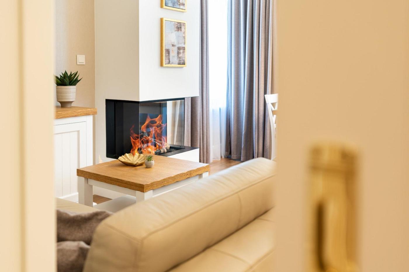 One-Bedroom Apartment with Balcony. The fireplace is a top feature of this apartment. This apartment comes with 1 living room, 1 separate bedroom and 1 bathroom with a shower and a hairdryer. Guests will find a stovetop, a refrigerator, a dishwasher and an oven in the well-fitted kitchenette. The apartment also includes a barbecue. This apartment has a washing machine, a coffee machine, a flat-screen TV and a balcony. The unit has 2 beds.