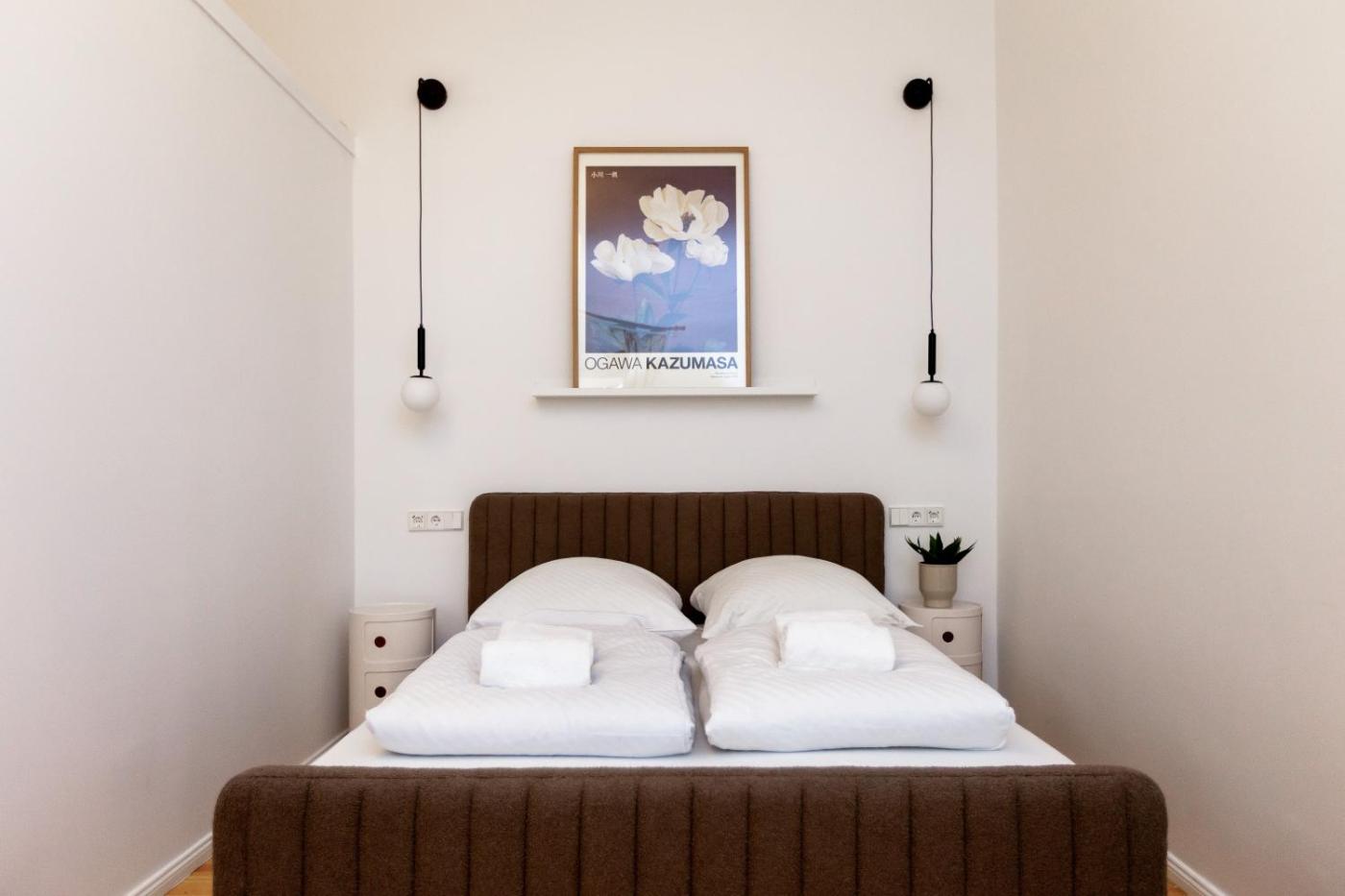 Two-Bedroom Apartment. This spacious apartment features a kitchen, a seating area, 2 separate bedrooms and 1 bathroom with a shower and a bidet. In the fully equipped kitchen, guests will find a stovetop, a refrigerator, a dishwasher and kitchenware. The apartment features a flat-screen TV, a washing machine, soundproof walls, a coffee machine as well as city views. The unit has 2 beds.