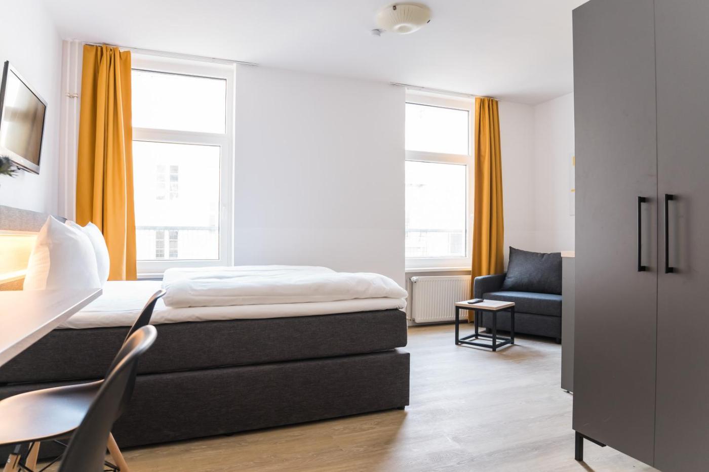 Deluxe Studio. The studio offers a sofa, heating, as well as a private bathroom boasting a shower and a hairdryer. The kitchen features a refrigerator, kitchenware and a microwave. The studio features a coffee machine, a seating area, a wardrobe, a flat-screen TV with cable channels, as well as ancourtyard view. The unit has 2 beds. ;