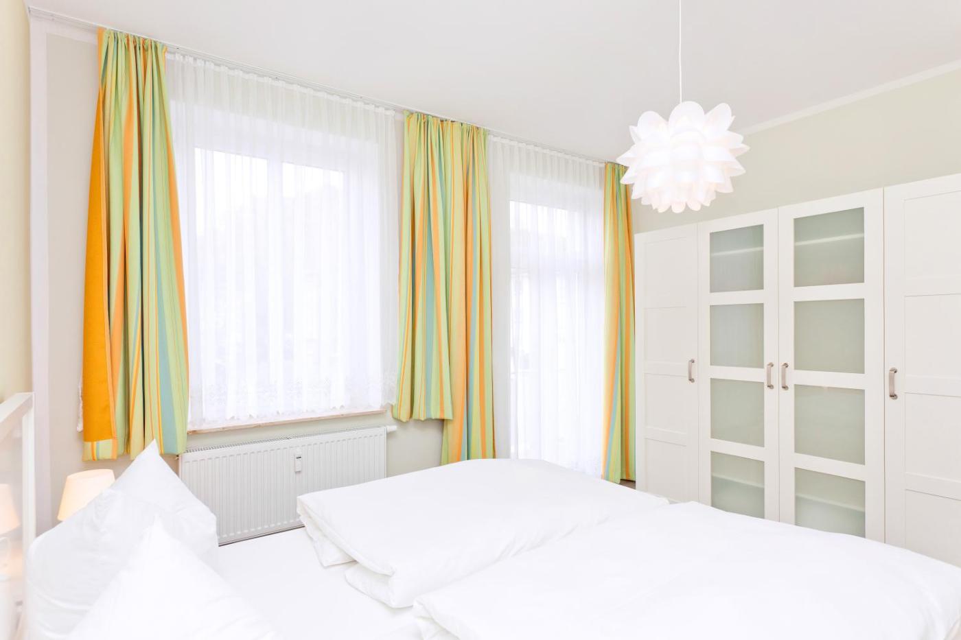 One-Bedroom Apartment - Villa Vogelsang - Jasmunder Straße 5. Bright and spacious apartment with a bedroom, a separate living area, a fully equipped kitchen and a private bathroom. There is also flat-screen TV and a balcony. ;