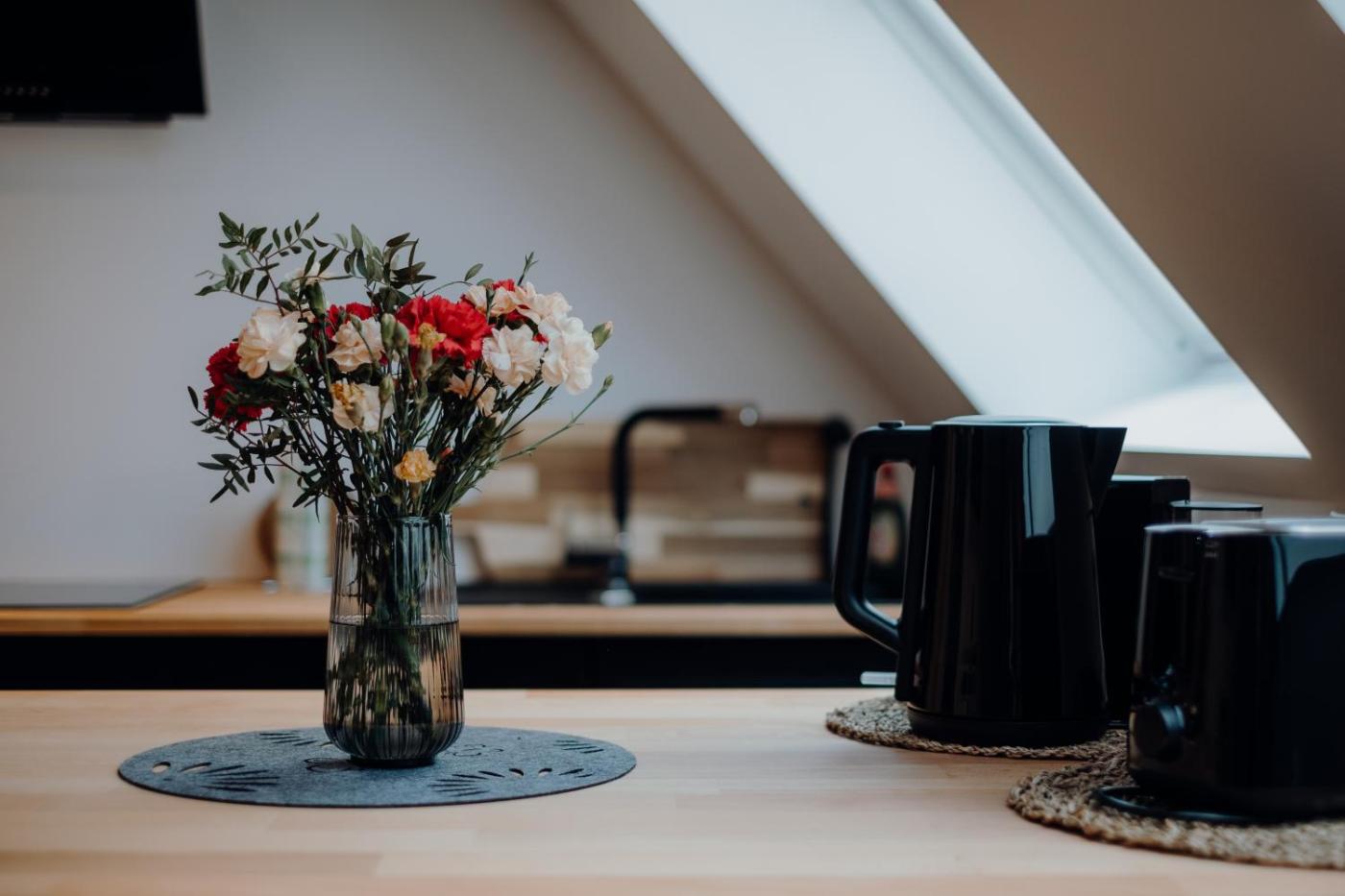 One-Bedroom Apartment. This air-conditioned apartment consists of 1 living room, 1 separate bedroom and 1 bathroom with a walk-in shower. Meals can be prepared in the well-fitted kitchen, which is equipped with a stovetop, a refrigerator, a dishwasher and kitchenware. The apartment features tiled floors, a seating area with a flat-screen TV, a tea and coffee maker, a dining area as well as a quiet street view. The unit offers 3 beds.