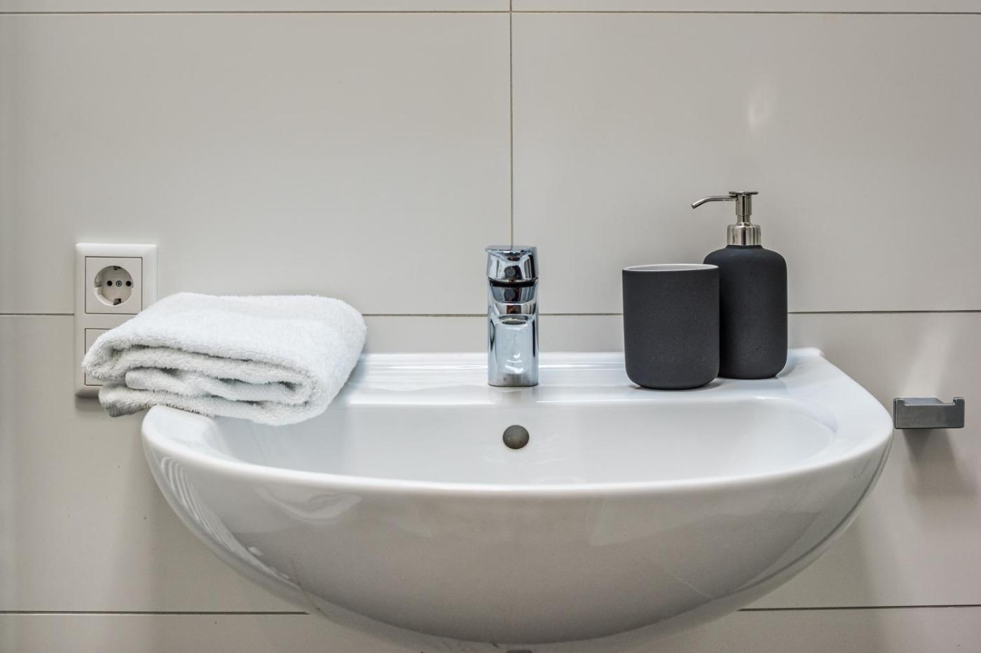 At the aparthotel, every unit is fitted with a wardrobe, a flat-screen TV, a private bathroom, bed linen and towels. A fridge, a stovetop and kitchenware are also available, as well as a coffee machine and a kettle. The units are equipped with heating facilities.