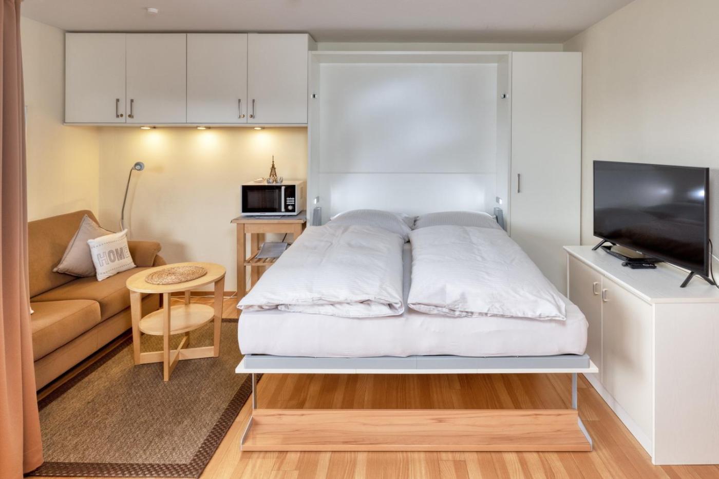 The 1-bedroom apartment comes with a living room with a TV, a fully equipped kitchen with a dishwasher and a microwave, and 1 bathroom with a hair dryer.