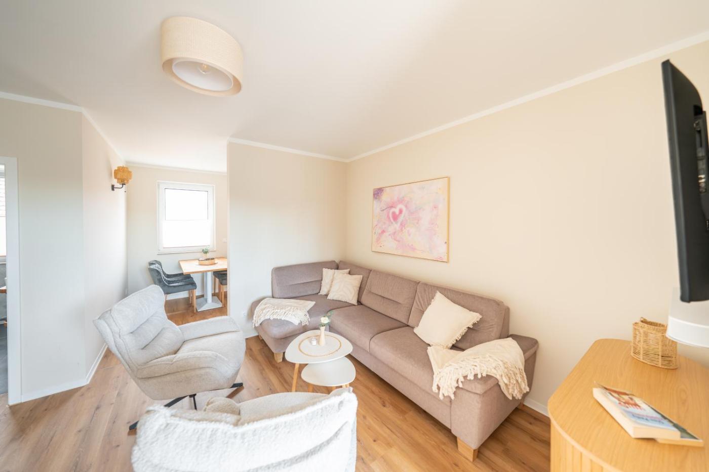 Two-Bedroom Apartment. This apartment features a hot tub and a sauna. This spacious apartment features a kitchen, a seating area, 2 separate bedrooms and 2 bathrooms with a shower and a hairdryer. Guests will find a stovetop, a refrigerator, a dishwasher and kitchenware in the kitchen. The apartment also comes with a barbecue. The air-conditioned apartment features a flat-screen TV with satellite channels, a washing machine, a coffee machine, a dining area as well as garden views. The unit has 4 beds. ;