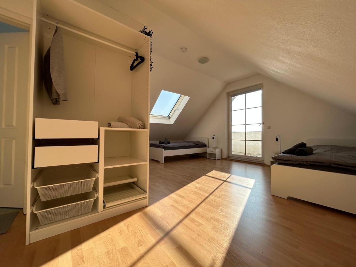 Offering a shared lounge and quiet street view, Parkplätze, Einzelbetten, 2 Balkone, fast Wi-Fi 100 Mbit, Homeoffice, Aufzug, lichtdurchflutet, Panoramablick is situated in Erlensee, 21 km from Klassikstadt and 25 km from Eiserner Steg. There is a private entrance at the apartment for the convenience of those who stay. The apartment features city views, a sun terrace, and free WiFi is available throughout the property.