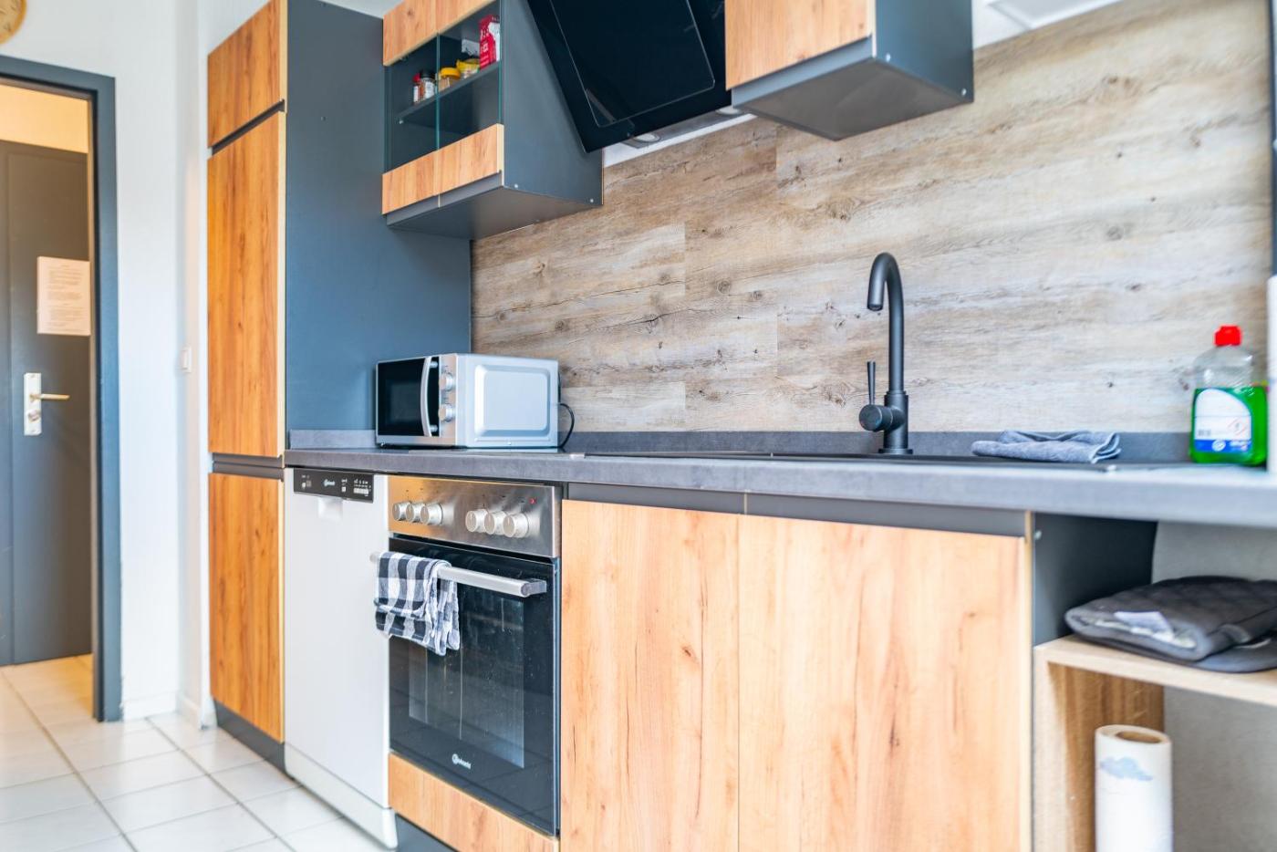 One-Bedroom Apartment. This apartment includes 1 living room, 1 separate bedroom and 1 bathroom with a shower and a hairdryer. In the well-equipped kitchen, guests will find a stovetop, a refrigerator, a dishwasher and kitchenware. The apartment offers a washing machine, a tea and coffee maker, a seating area, a dining area, as well as a flat-screen TV with streaming services. The unit has 2 beds.