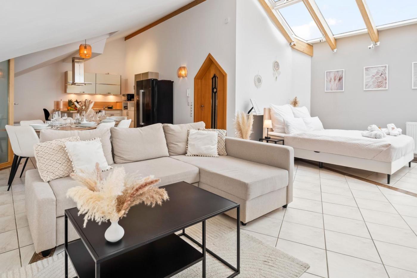 Two-Room Apartment. Guests will have a special experience as this apartment offers a hot tub and a spa bath. This spacious apartment is comprised of 1 living room, 2 separate bedrooms and 1 bathroom with a walk-in shower and free toiletries. Meals can be prepared in the well-fitted kitchen, which comes with a stovetop, a refrigerator, a dishwasher and kitchenware. This apartment features a private entrance, flat-screen TV with streaming services, mountain views, as well as chocolate for guests. The unit offers 4 beds.