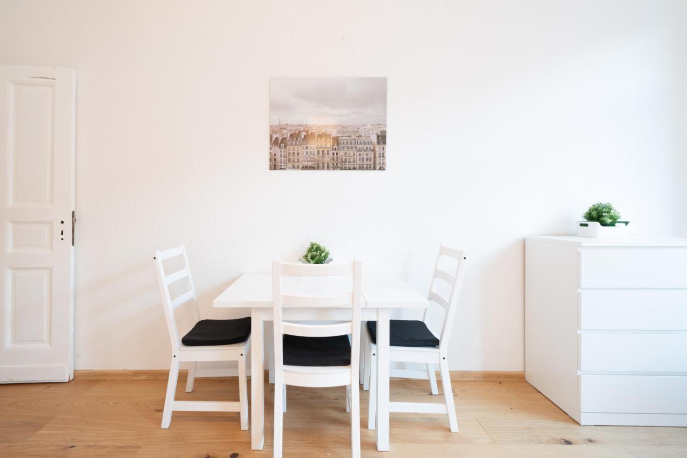 Two-Bedroom Apartment. This spacious apartment is comprised of 2 bedrooms, kitchen and 1 bathroom with a bath. In the kitchen, guests will find a stovetop, a refrigerator, a dishwasher and kitchenware. The apartment offers a flat-screen TV, a washing machine, a tea and coffee maker, heating as well as ancourtyard view. The unit offers 4 beds.