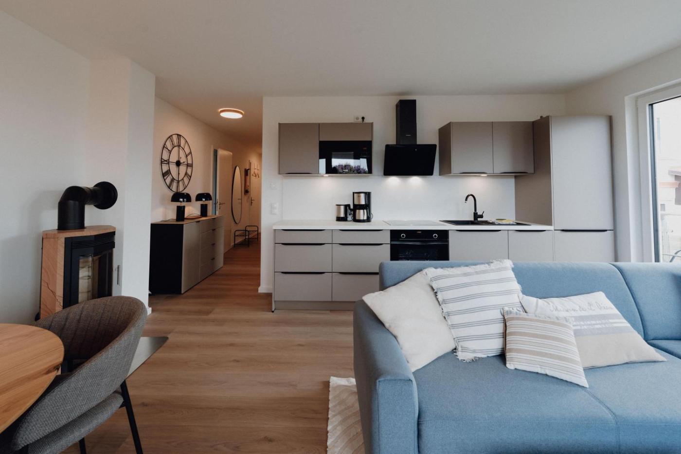 Apartment with Sea View. This apartments special feature is the fireplace. This spacious apartment consists of a kitchen, a seating area, 2 separate bedrooms and 1 bathroom with a bath and a shower. The fully equipped kitchen features a stovetop, a refrigerator, a dishwasher and kitchenware. Featuring a balcony with sea views, this apartment also provides a washing machine and a TV with satellite channels. The unit offers 2 beds.