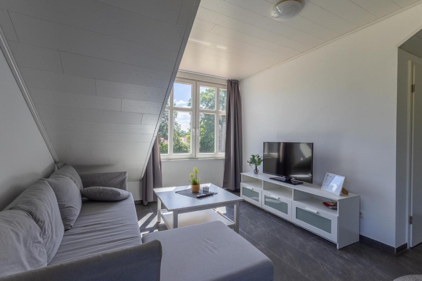 Three-Bedroom Apartment. Boasting a private entrance, this spacious apartment also features 3 bedrooms, a seating area and 1 bathroom with a walk-in shower and a hairdryer. Guests will find a stovetop, a refrigerator, a dishwasher and kitchenware in the kitchen. The apartment also comes with a barbecue. The apartment features a flat-screen TV with satellite channels, a washing machine, soundproof walls, a tea and coffee maker as well as garden views. The unit has 6 beds.
