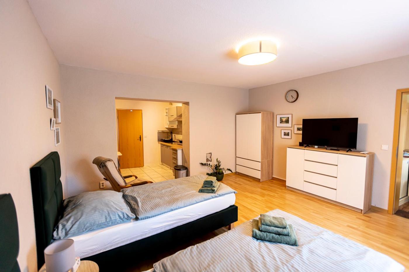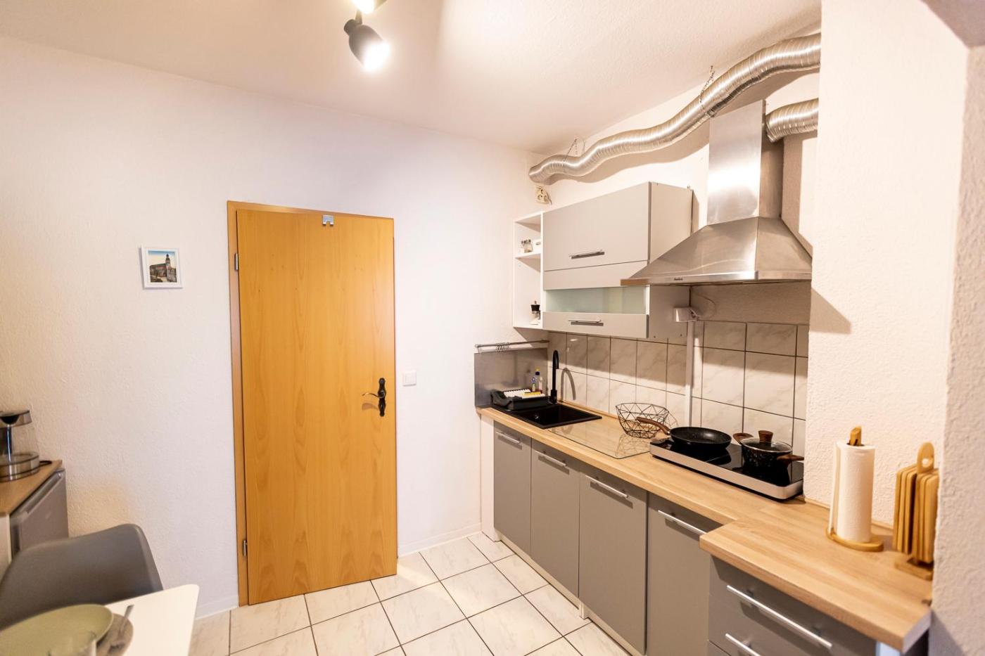 Apartment. Featuring a private entrance, this apartment also is comprised of 1 separate bedroom, 1 bathroom with a shower, a kitchen and a dining area. The fully equipped kitchen features a stovetop, a refrigerator and kitchenware. The apartment offers a flat-screen TV with streaming services, a tea and coffee maker, a seating area, a wardrobe as well as a quiet street view. The unit offers 2 beds.