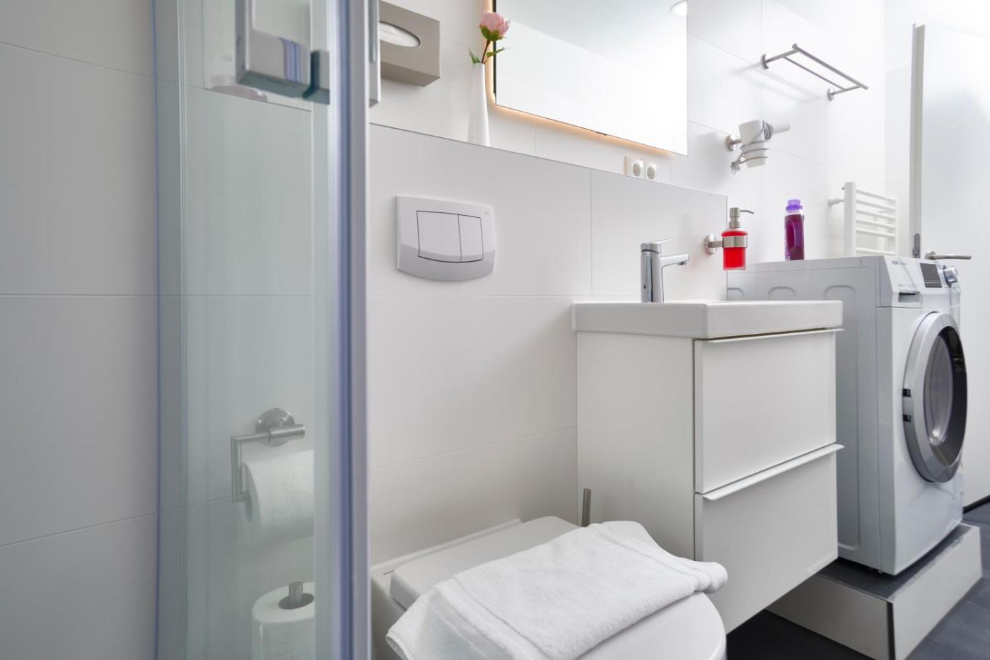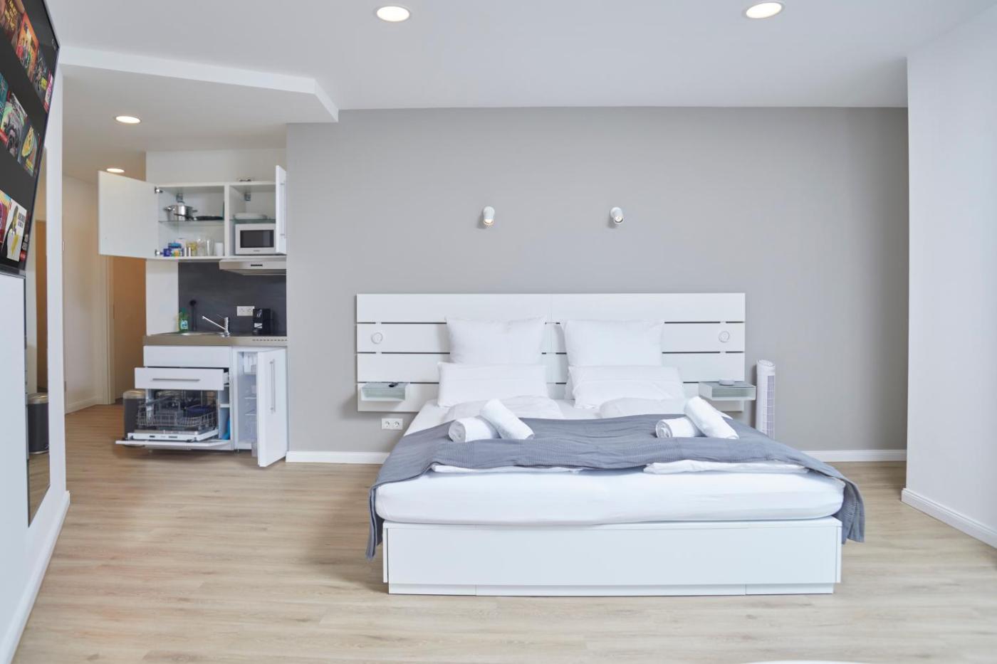 Apartment 7 with King Bed. Providing free toiletries, this studio includes a private bathroom with a shower and a hairdryer. The well-fitted kitchenette has a stovetop, a refrigerator, a dishwasher and kitchenware. This studio features a washing machine, soundproof walls, flat-screen TV with streaming services, as well as winechampagne for guests. The unit offers 1 bed.