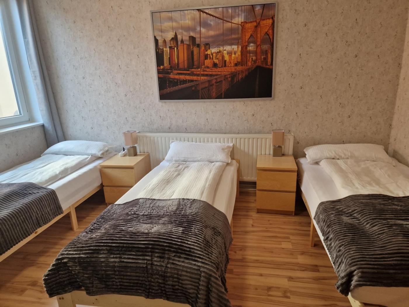 Two-Bedroom Apartment. The apartment features 2 bedrooms, 1 bathroom and a kitchen. The apartments kitchen is available for cooking and storing food. This apartment provides heating and a flat-screen TV with streaming services. The unit offers 5 beds.