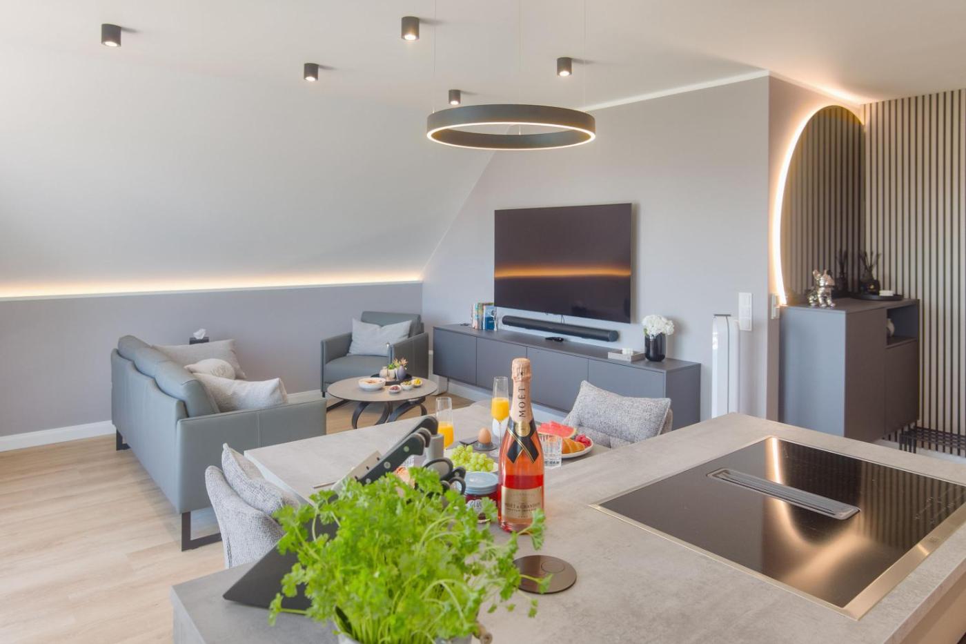 Apartment. This apartment features 1 bedroom, a kitchenette and 1 bathroom with a shower and a hairdryer. The fully equipped kitchenette has a stovetop, a refrigerator, a dishwasher and an oven. This apartment features a washing machine, a coffee machine, a TV and a balcony. The unit has 1 bed.