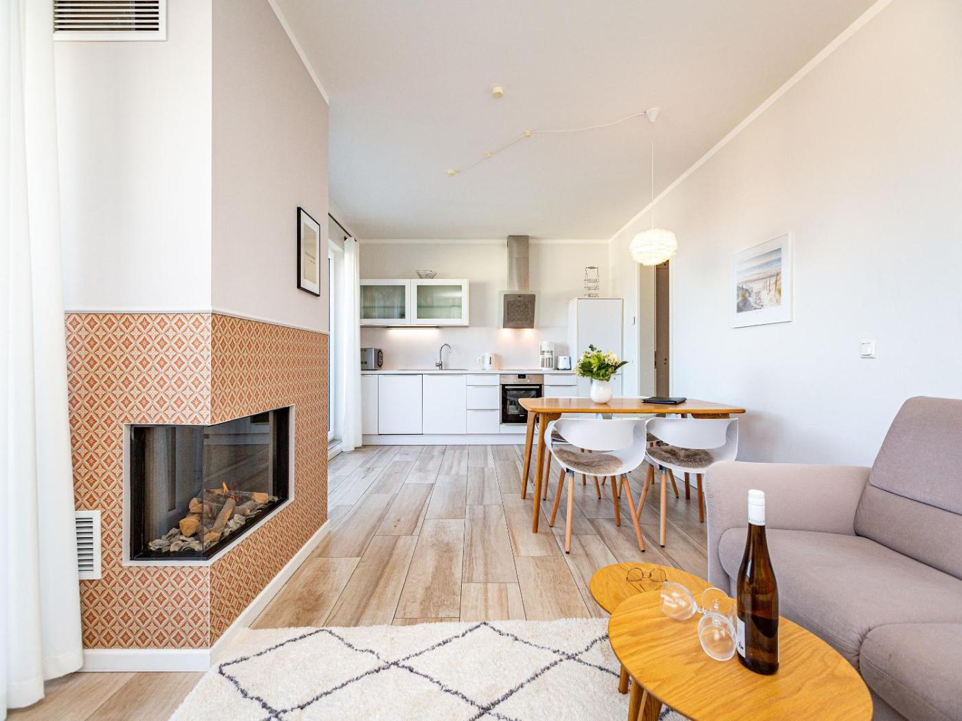 Two-Bedroom Apartment with Balcony. Guests will have a special experience as the apartment features a fireplace. This spacious apartment consists of 2 bedrooms, a kitchenette and 1 bathroom with a bath and a shower. In the fully equipped kitchenette, guests will find a refrigerator, a dishwasher, an oven and a microwave. Featuring a balcony with sea views, this apartment also provides a washing machine and a flat-screen TV. The unit offers 2 beds.