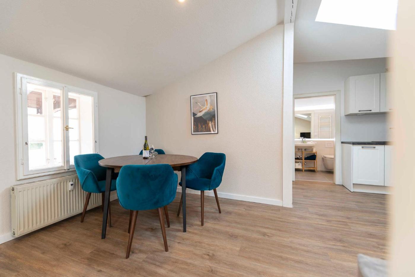 The apartment with a balcony andcourtyard views has 1 bedroom, a living room, a flat-screen TV, an equipped kitchenette with a dishwasher and an oven, and 1 bathroom with a walk-in shower. Towels and bed linen are available in the apartment.