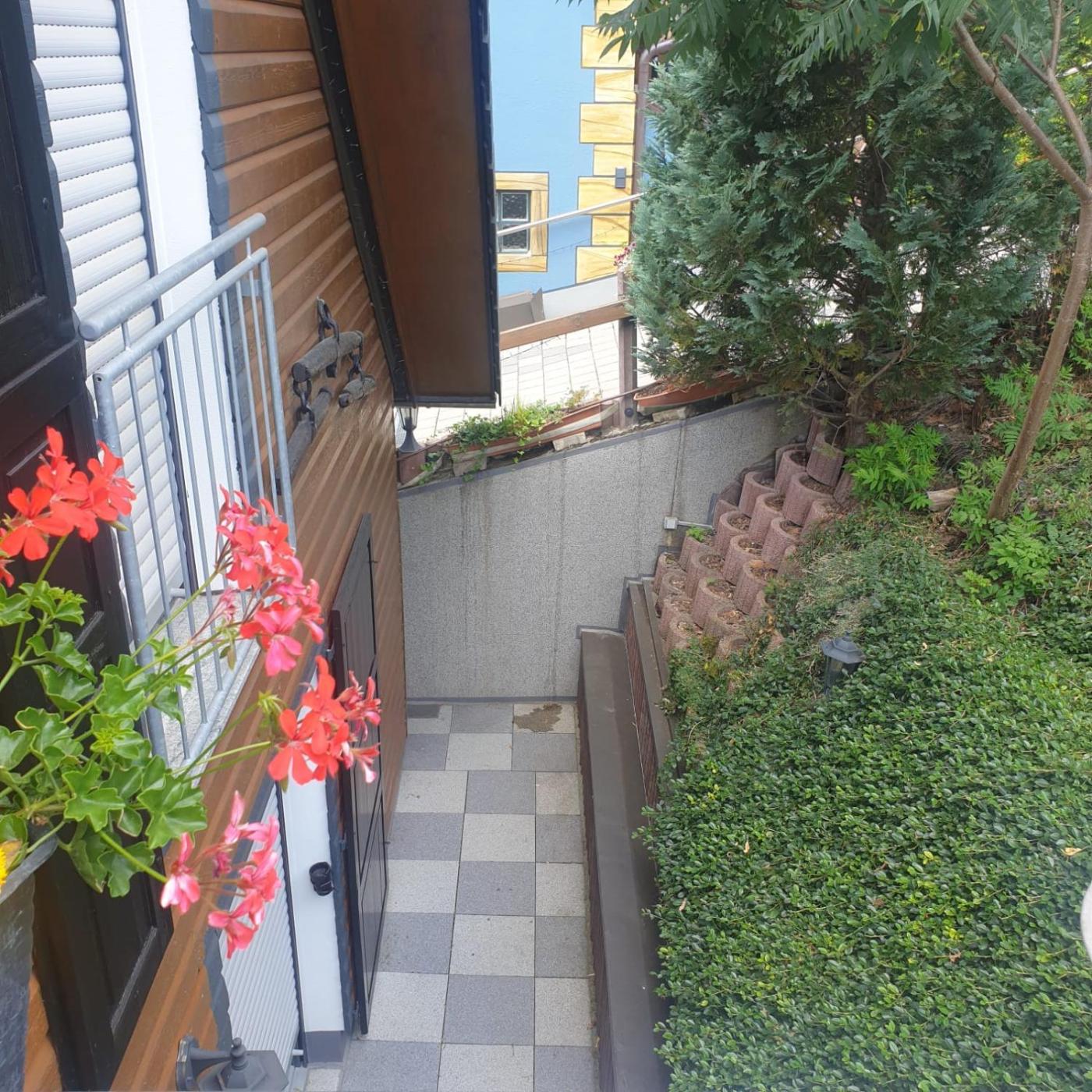 Single Room with Shared Shower and Toilet. The single room offers a wardrobe, parquet floors, as well as a shared bathroom featuring a shower and a hairdryer. Meals can be prepared in the kitchenette, which is equipped with a stovetop, a refrigerator, kitchenware and an oven. The single room provides a flat-screen TV with satellite channels, a washing machine, a tea and coffee maker, a dining area as well as garden views. The unit offers 1 bed. ;