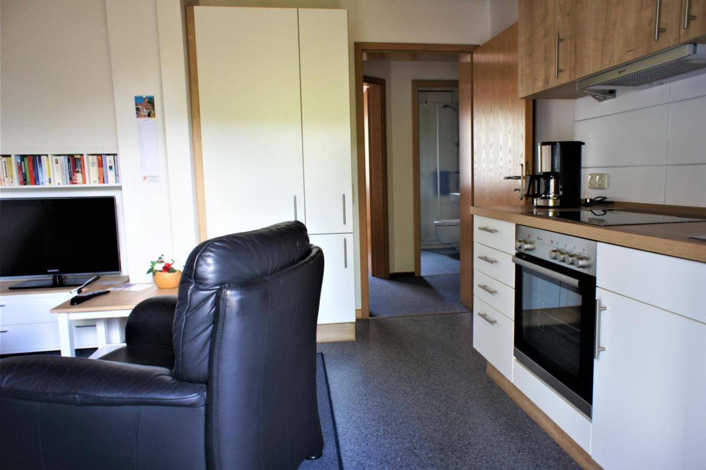 One-Bedroom Apartment. This apartment includes 1 living room, 1 separate bedroom and 1 bathroom with a shower. In the well-fitted kitchenette, guests will find a stovetop, a refrigerator, kitchenware and an oven. Boasting a terrace with garden views, this apartment also offers a tea and coffee maker and a flat-screen TV with satellite channels. The unit has 1 bed. ;