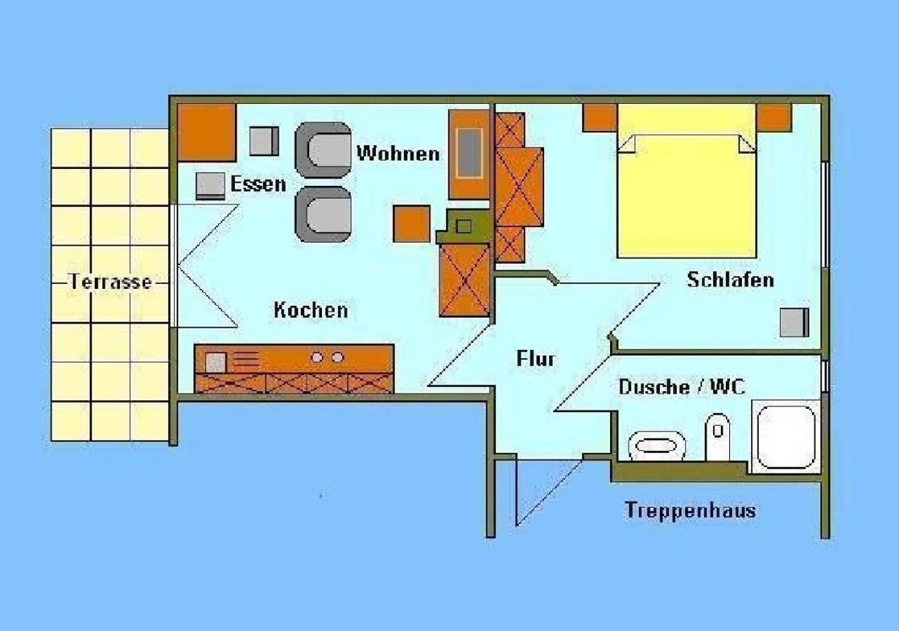 Apartment with Terrace. This apartment is comprised of 1 living room, 1 separate bedroom and 1 bathroom with a shower. The well-fitted kitchen features a stovetop, a refrigerator, a dishwasher and kitchenware. Featuring a terrace with garden views, this apartment also offers a tea and coffee maker and a flat-screen TV with satellite channels. The unit offers 2 beds. ;