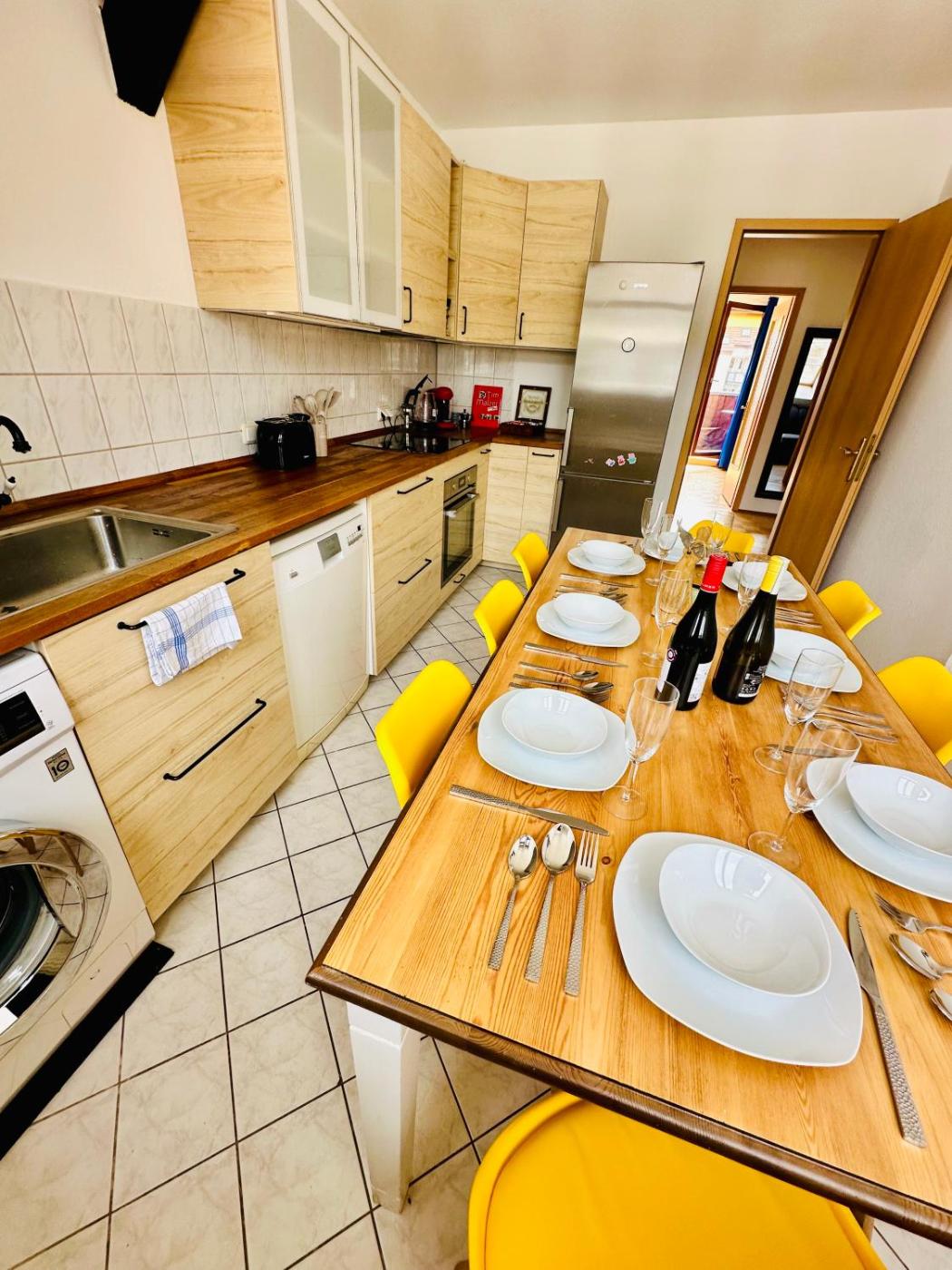 Three-Bedroom Apartment. This spacious apartment comprises 1 living room, 3 separate bedrooms and 2 bathrooms with a shower and free toiletries. Meals can be prepared in the kitchen, which comes with a stovetop, a refrigerator, a dishwasher and kitchenware. This apartment features a washing machine, flat-screen TV with streaming services, garden views, as well as winechampagne for guests. The unit offers 8 beds.