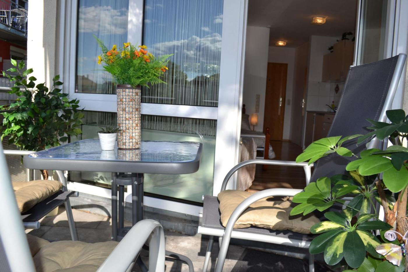 Studio Apartment. This apartment comprises 1 bedroom, a kitchenette and 1 bathroom with a walk-in shower and a hairdryer. Guests can make meals in the kitchenette that comes with a stovetop, a refrigerator, kitchenware and a microwave. Featuring a balcony with garden views, this apartment also provides a tea and coffee maker and a flat-screen TV with cable channels. The unit offers 2 beds.