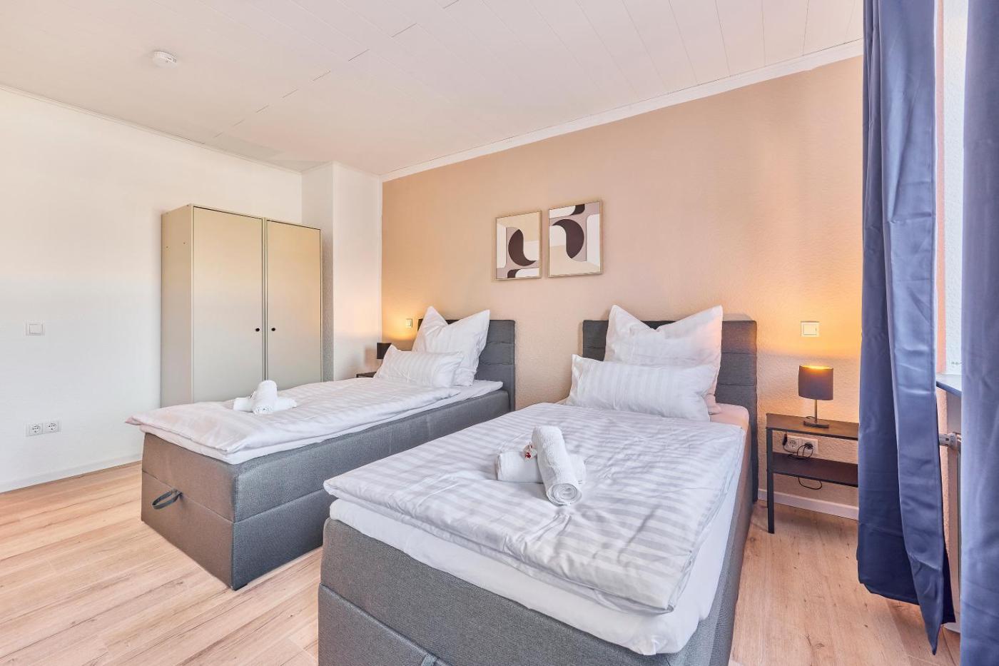 Two-Bedroom Apartment. This apartment features 2 bedrooms, a kitchen and 1 bathroom with a shower. Meals can be prepared in the kitchen, which has a stovetop, a refrigerator, a dishwasher and an oven. Boasting a balcony, this apartment also features a washing machine, a tea and coffee maker and a flat-screen TV. The unit has 4 beds.
