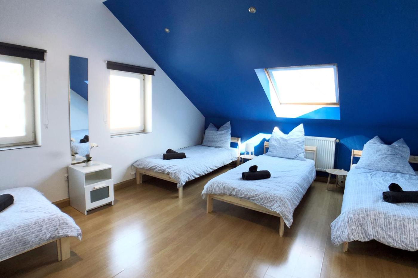 Three-Bedroom Apartment. Featuring a private entrance, this spacious apartment also consists of 1 living room, 3 separate bedrooms and 1 bathroom with a shower. Guests can make meals in the kitchen that is equipped with a stovetop, a refrigerator, kitchenware and an oven. The apartment provides a washing machine, a coffee machine, a seating area, a flat-screen TV with satellite channels, as well as city views. The unit offers 5 beds.