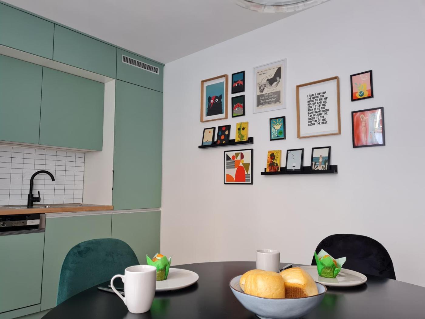 One-Bedroom Apartment. The fully equipped kitchen features a stovetop, a refrigerator, a dishwasher and kitchenware. The spacious apartment provides a washing machine, a tea and coffee maker, a dining area, a flat-screen TV with cable channels, as well as a quiet street view. The unit offers 2 beds.