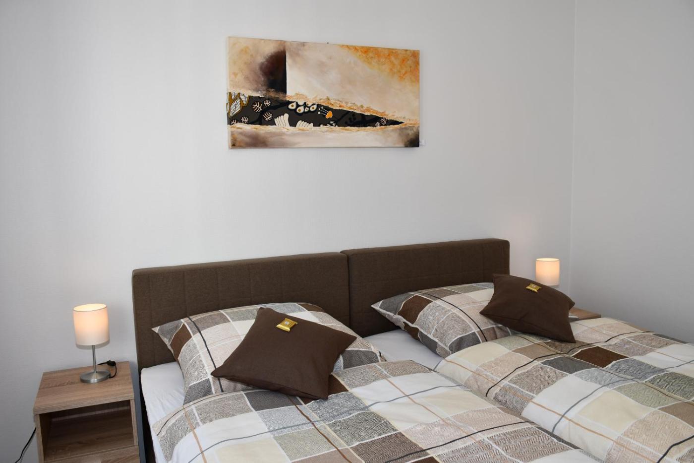 Two-Bedroom Apartment. Boasting a private entrance, this apartment comes with 1 living room, 2 separate bedrooms and 1 bathroom with a walk-in shower and a hairdryer. Guests can make meals in the kitchenette that features a stovetop, a refrigerator, a dishwasher and kitchenware. Featuring a terrace with city views, this apartment also features a washing machine and a flat-screen TV with cable channels. The unit has 4 beds. ;