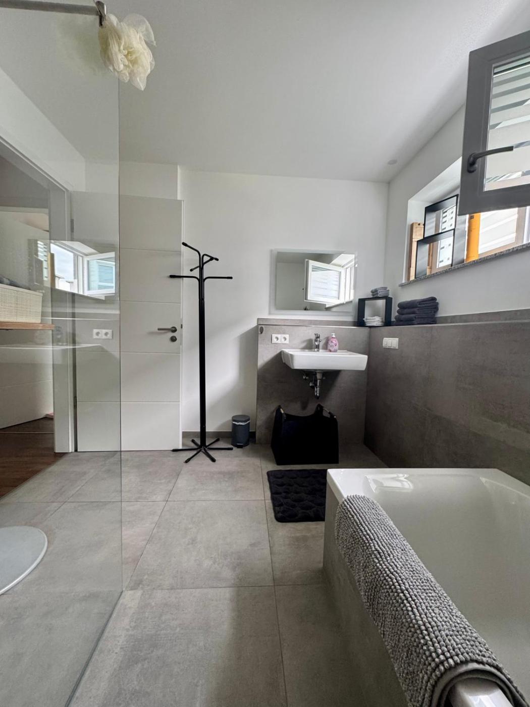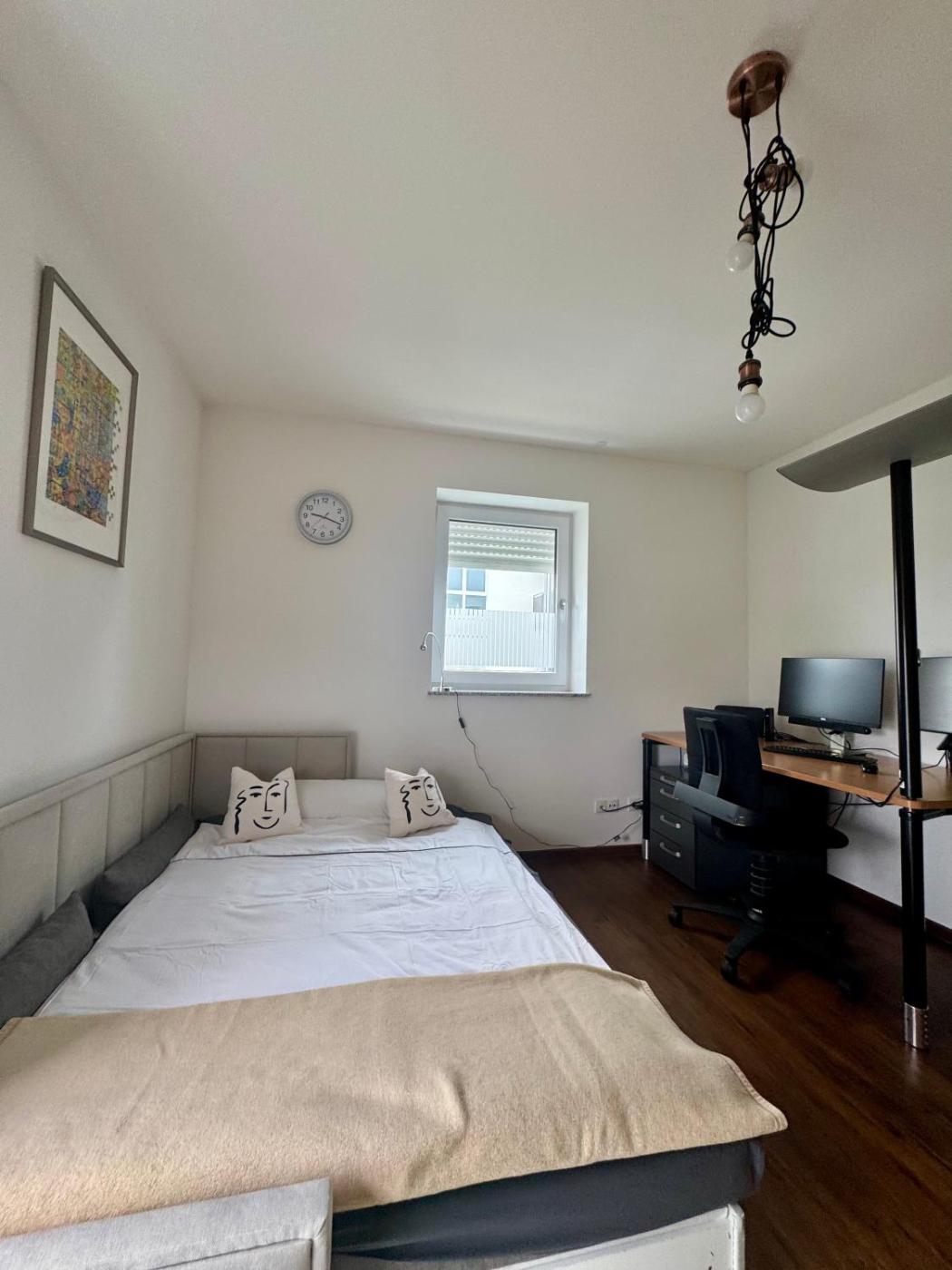 Located in Mühldorf in the Bavaria region, Moderne Wohnung 100 m2 mit Büro und Terrasse features a balcony and city views. With quiet street views, this accommodation offers a patio. There is a sun terrace and guests can make use of free WiFi and free private parking.