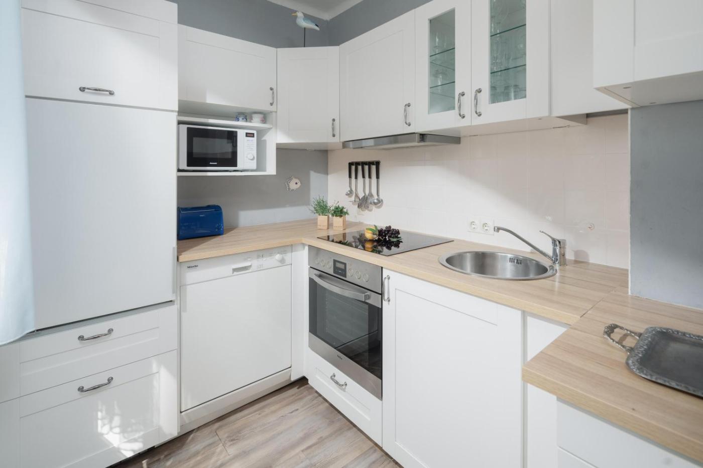 Apartment. Meals can be prepared in the kitchen, which comes with a refrigerator, an oven, a microwave and a toaster. The apartment offers a washing machine and a coffee machine. ;