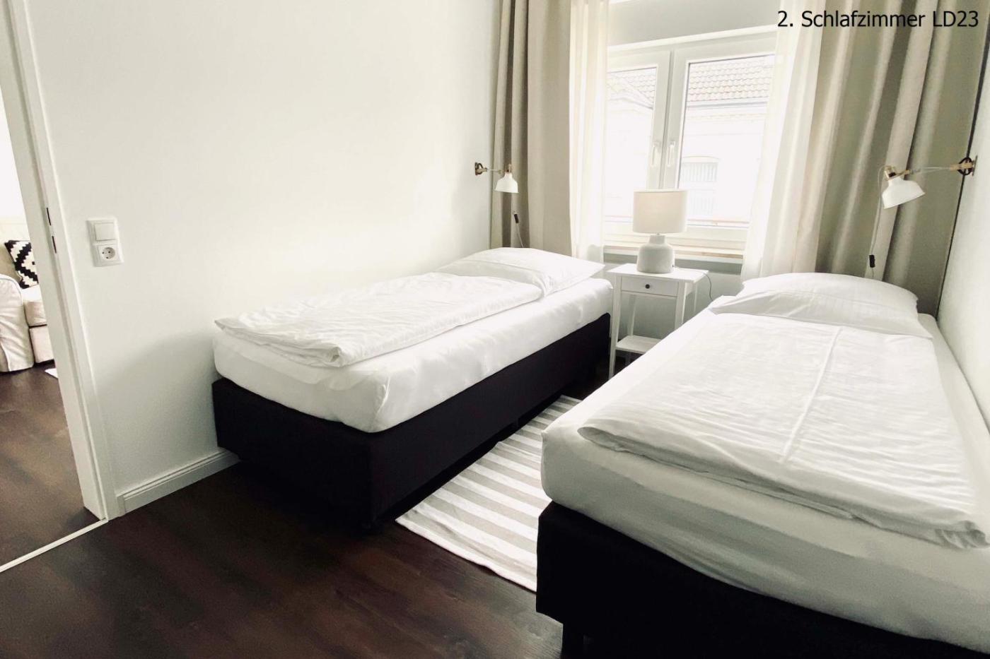 Two-Bedroom Apartment. This spacious apartment comes with 1 living room, 2 separate bedrooms and 1 bathroom with a shower and a hairdryer. Guests can make meals in the kitchen that features a stovetop, a refrigerator, a dishwasher and kitchenware. Boasting a balcony with city views, this apartment also features a coffee machine and a flat-screen TV. The unit has 4 beds.
