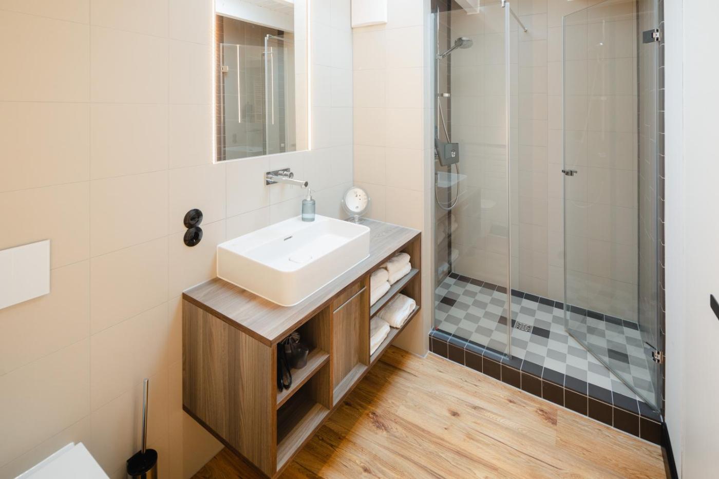 One-Bedroom Apartment. Boasting a private entrance, this apartment features 1 living room, 1 separate bedroom and 1 bathroom with a walk-in shower and a hairdryer. The well-equipped kitchen has a stovetop, a refrigerator, a dishwasher and a microwave. Featuring a terrace with a quiet street view, this apartment also features a tea and coffee maker and a flat-screen TV. The unit has 2 beds.