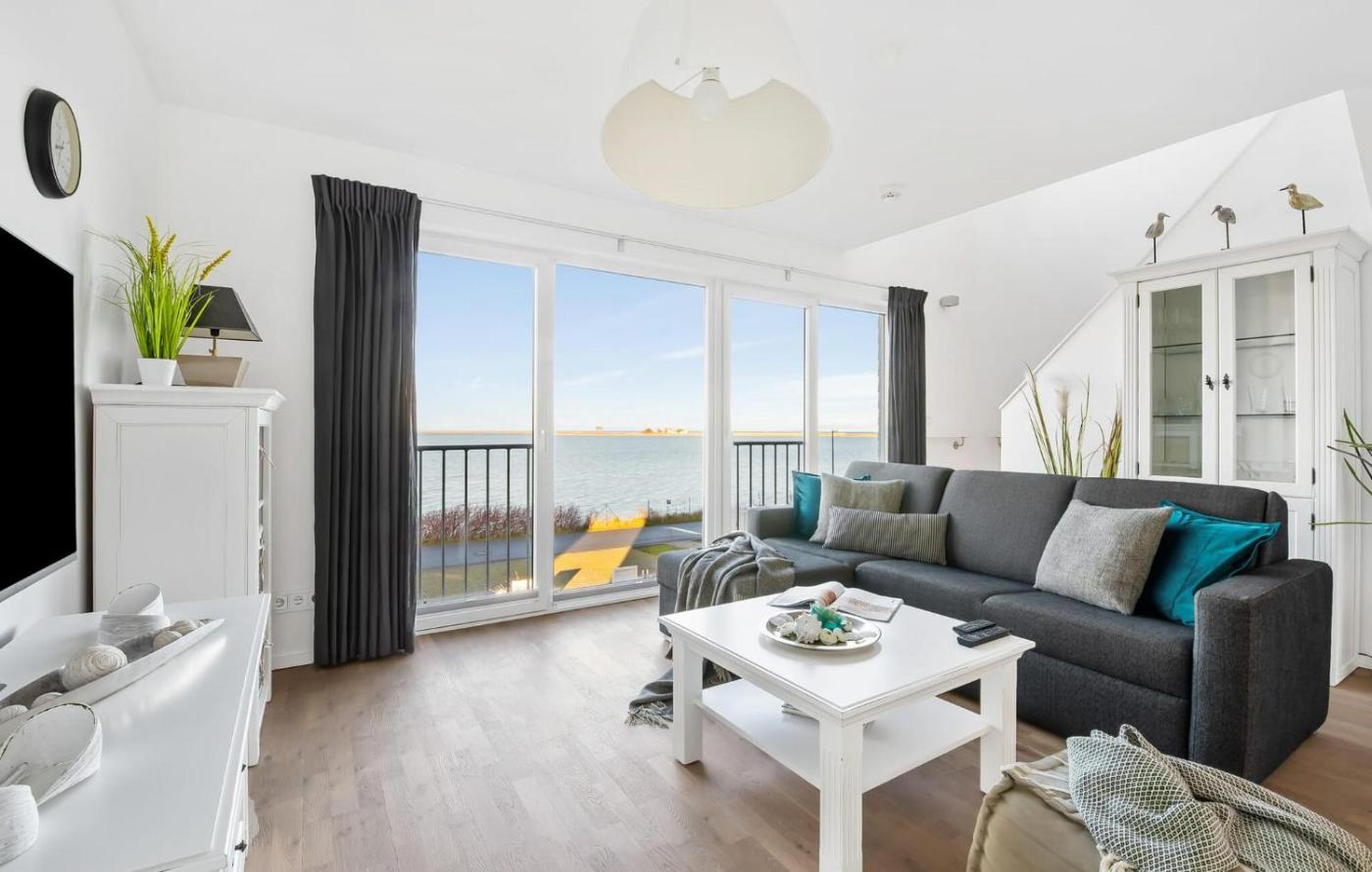The spacious apartment with a balcony and sea views has 2 bedrooms, a living room, a TV, an equipped kitchen with a dishwasher and an oven, and 2 bathrooms with a hot tub. The accommodation offers a fireplace.