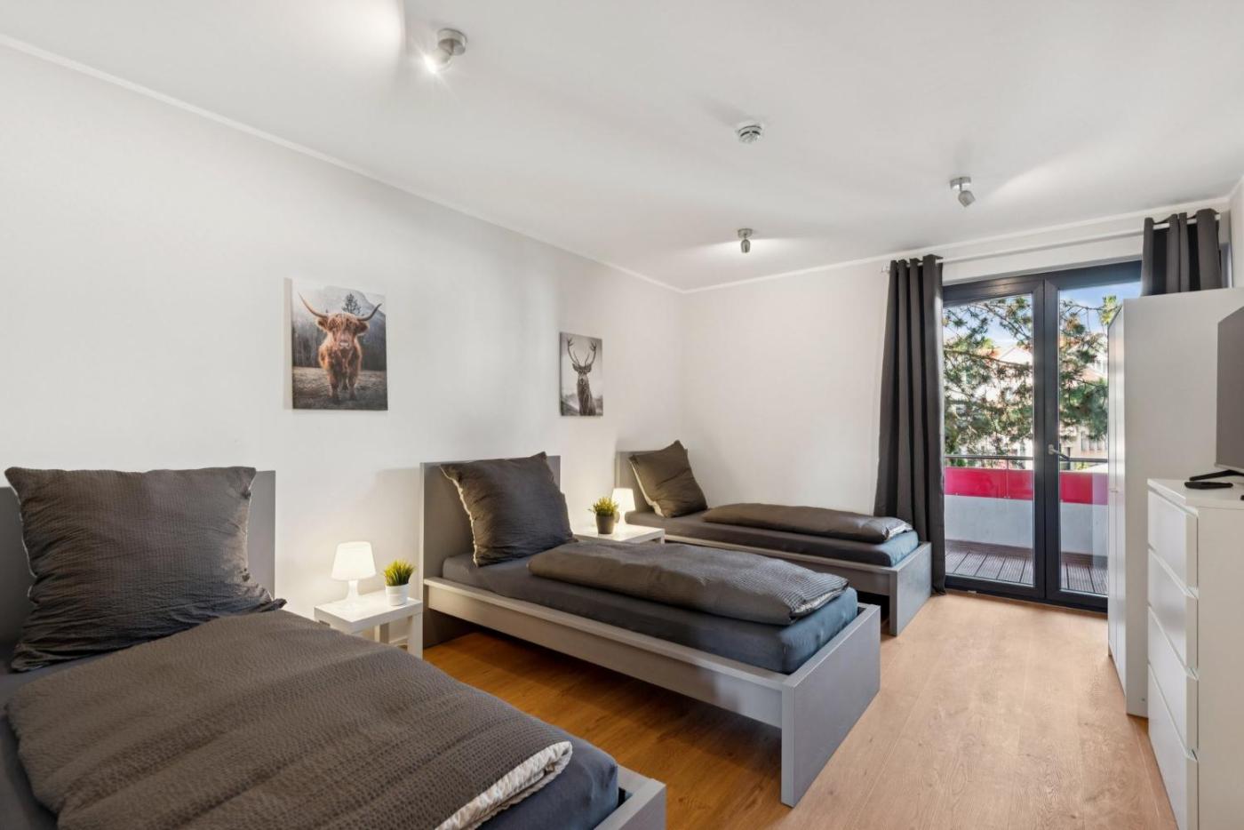 Two-Bedroom Apartment. The apartment features 2 bedrooms, 1 bathroom and a kitchen. The apartments kitchen is available for cooking and storing food. Featuring a balcony, this apartment also offers a washing machine and a flat-screen TV. The unit offers 7 beds. ;