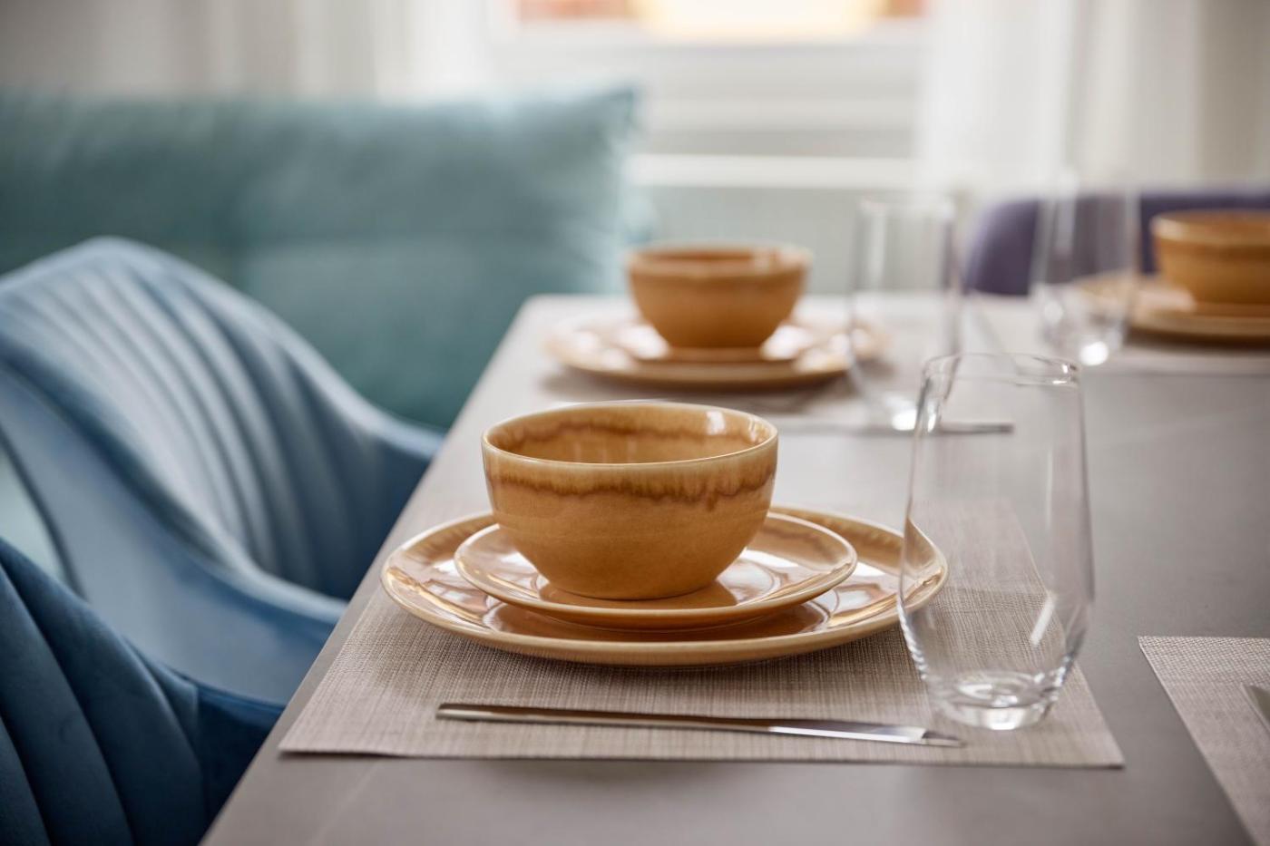 All plates, cutlery, glasses and other tableware have been sanitized