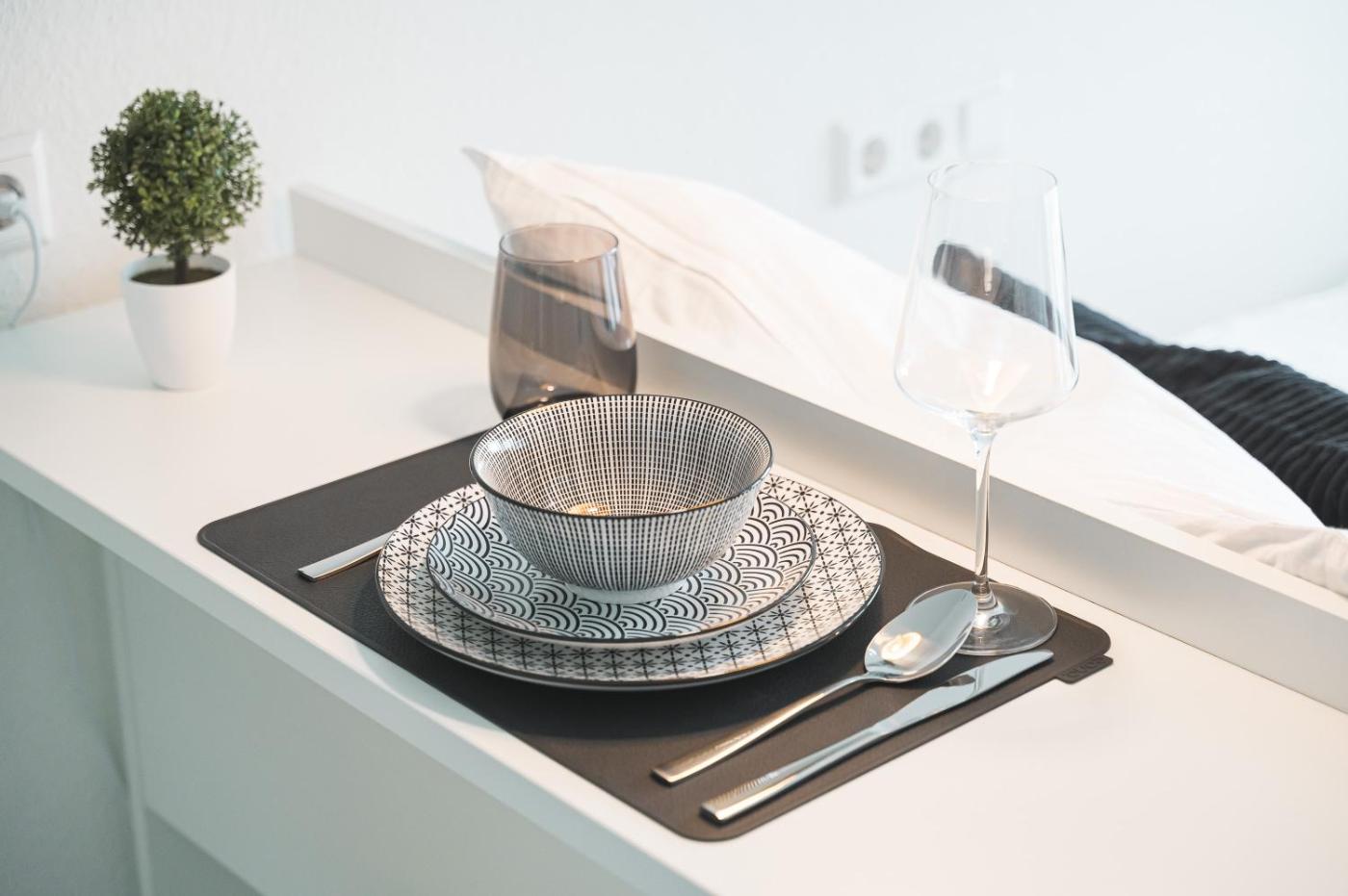 All plates, cutlery, glasses and other tableware have been sanitized