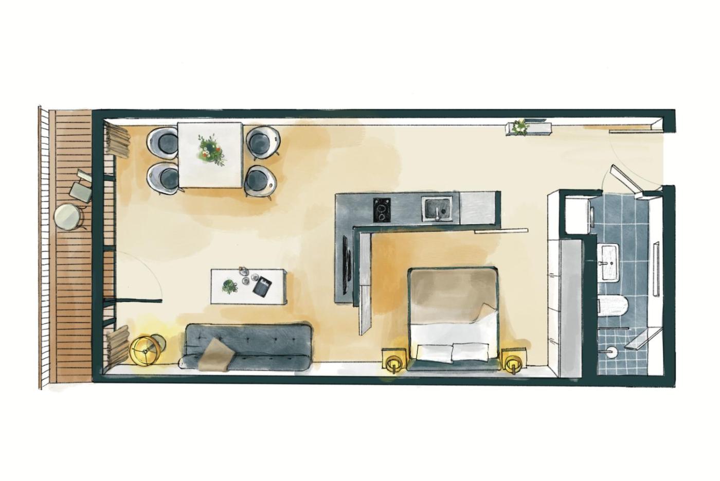Standard Apartment. Stylish apartment with kitchen, dishwasher, washingdrying machine, balcony and floor cooling system. Please note you have a limitedside lake view from the balcony in this apartment. ;
