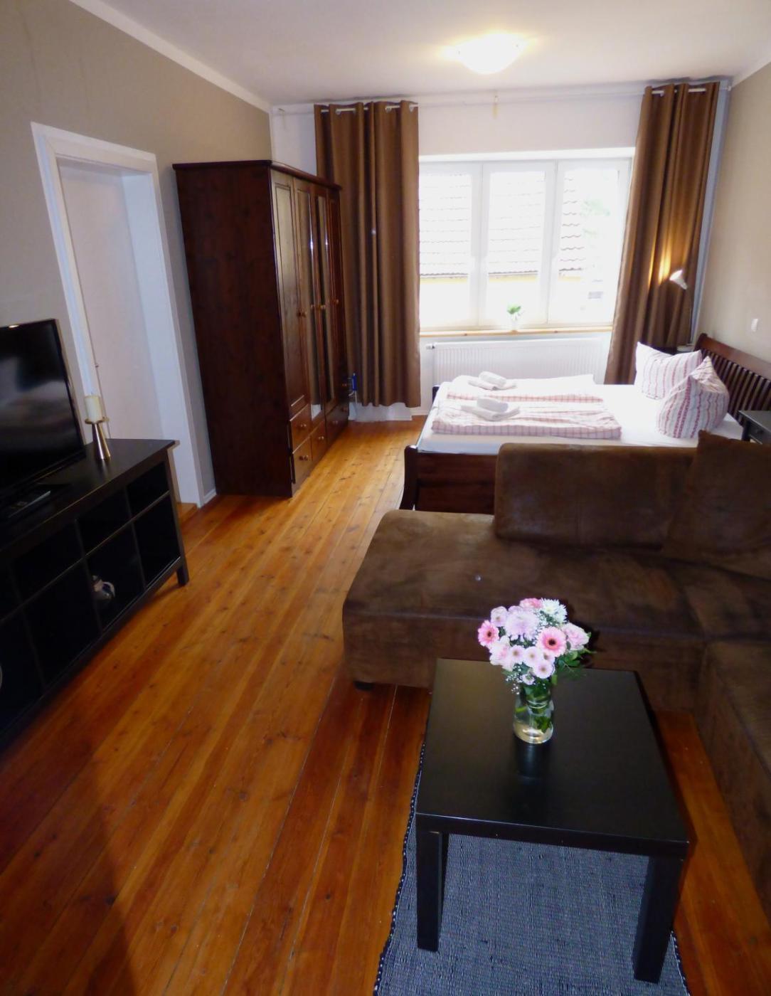 Apartment with Shower. This apartment is comprised of 1 living room, 1 separate bedroom and 1 bathroom with a shower. Meals can be prepared in the well-fitted kitchen, which comes with a stovetop, a refrigerator, a dishwasher and kitchenware. The apartment features parquet floors, a seating area with a flat-screen TV, a tea and coffee maker, a dining area, as well as a wardrobe. The unit offers 2 beds. ;