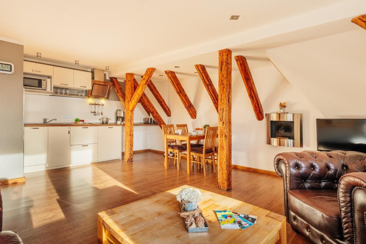 Apartment with Mountain View. This apartment offers a fireplace. This apartment comprises a kitchen, a seating area, 1 separate bedroom and 1 bathroom with a shower and a hairdryer. Meals can be prepared in the well-fitted kitchen, which comes with a stovetop, a refrigerator, a dishwasher and kitchenware. The apartment provides a TV with cable channels, a washing machine, a coffee machine, a wardrobe as well as mountain views. The unit offers 1 bed.