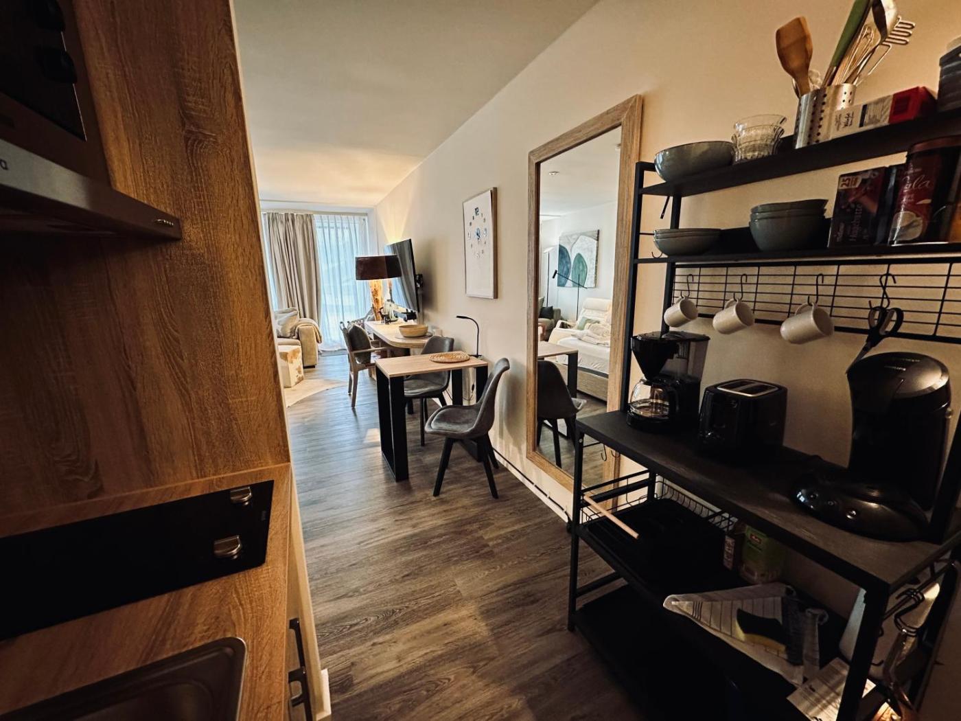 Deluxe Double Studio. The studio offers a private entrance, a tea and coffee maker, as well as a private bathroom featuring a walk-in shower and a hairdryer. In the fully equipped kitchenette, guests will find a stovetop, a refrigerator, kitchenware and a toaster. A seating area with a flat-screen TV, a dining area and a terrace are featured in this studio. The unit offers 1 bed.