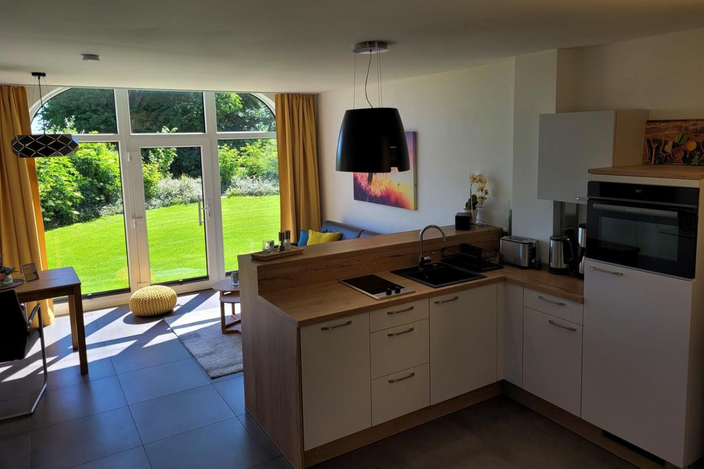 One-Bedroom Apartment. The apartment features 1 bedroom, 1 bathroom and a kitchen. The kitchen is equipped with a refrigerator and an oven. This apartment has a barbecue, heating, a flat-screen TV and garden views. The unit offers 1 bed.