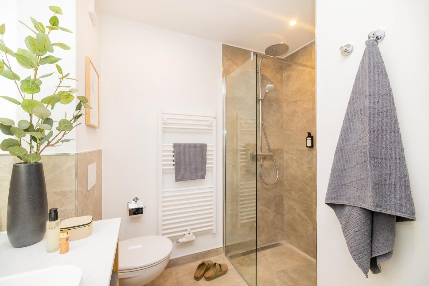 One-Bedroom Apartment with Balcony. This apartment includes 1 living room, 1 separate bedroom and 1 bathroom with a shower and a hairdryer. In the kitchen, guests will find a stovetop, a refrigerator, a dishwasher and kitchenware. The apartment has parquet floors, a seating area with a flat-screen TV, soundproof walls, a coffee machine as well as garden views. The unit has 1 bed.