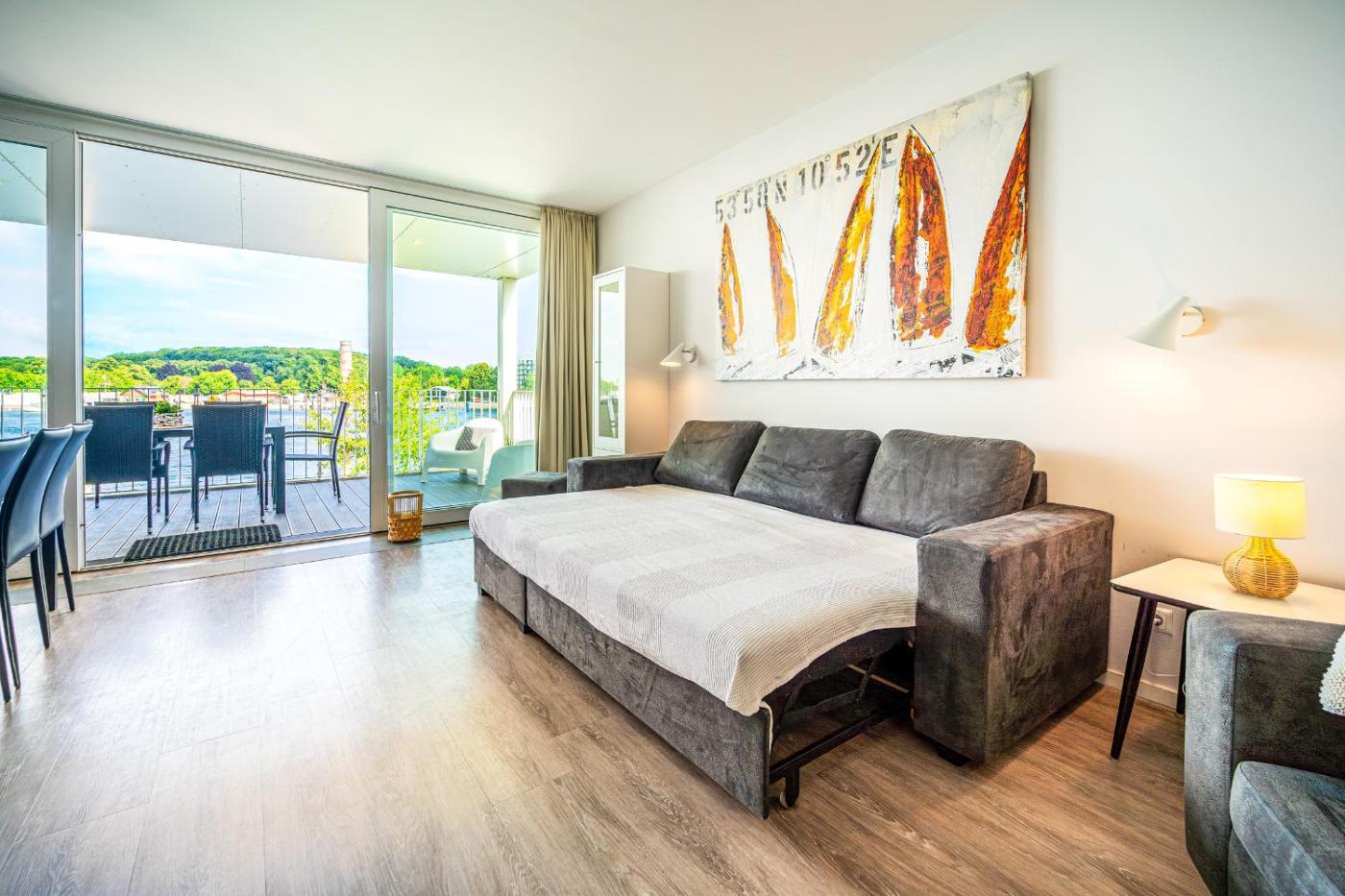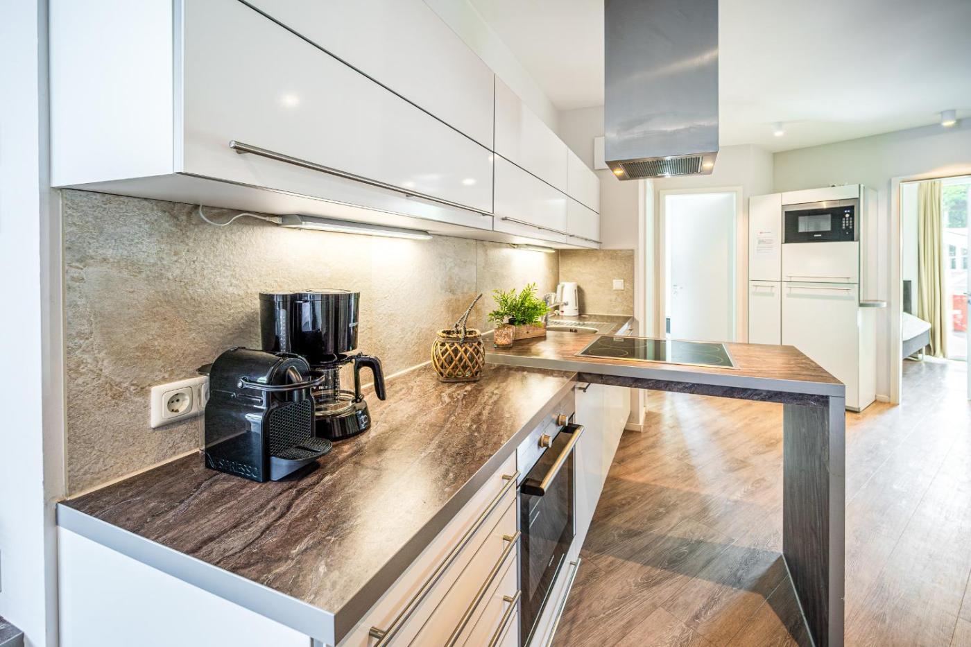 Apartment with Sea View. This luxurious apartment provides a hot tub, a sauna and a fireplace. This spacious apartment includes 1 living room, 2 separate bedrooms and 1 bathroom with a bath and a shower. The well-equipped kitchen has a stovetop, a refrigerator, a dishwasher and kitchenware. Boasting a balcony with sea views, this apartment also offers a coffee machine and a TV. The unit has 4 beds.