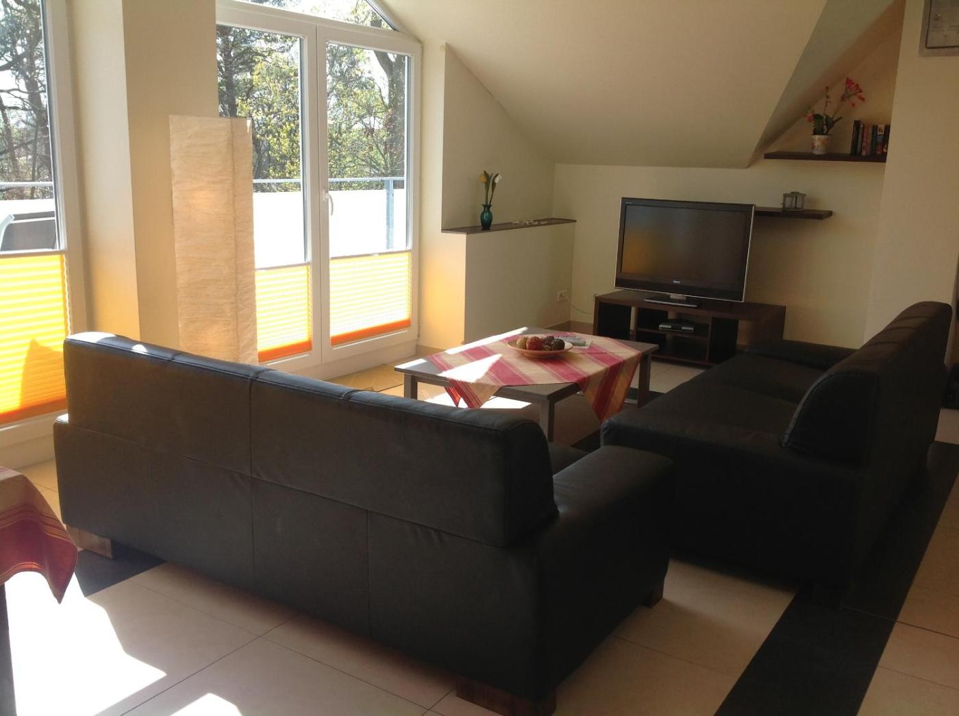 Free WiFi and a fully equipped kitchen are featured in every apartment at Appartementhaus Ostseeresidenz.include a seating area with a flat-screen satellite TV, and some also have a washing machine, a sofa and a balcony or terrace facing the garden.