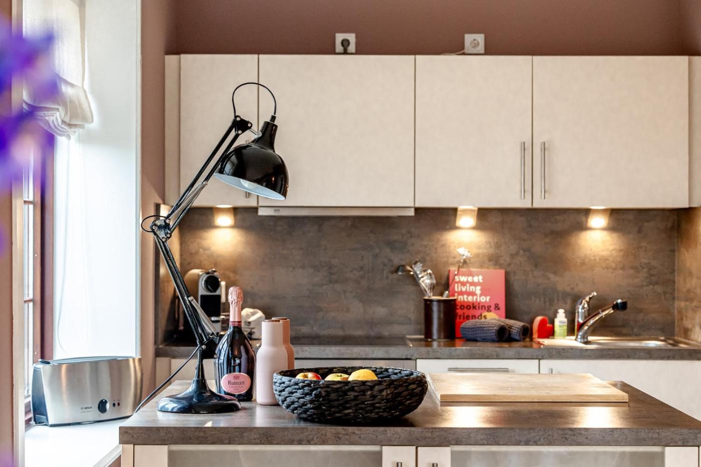 Apartment. This apartment features 1 bedroom, a kitchen and 1 bathroom with a shower and a hairdryer. Guests can make meals in the kitchen that has a refrigerator, a dishwasher, an oven and a toaster. The apartment features a washing machine, a coffee machine, tumble dryer, a tiled floor, as well as a flat-screen TV with satellite channels. The unit has 1 bed.