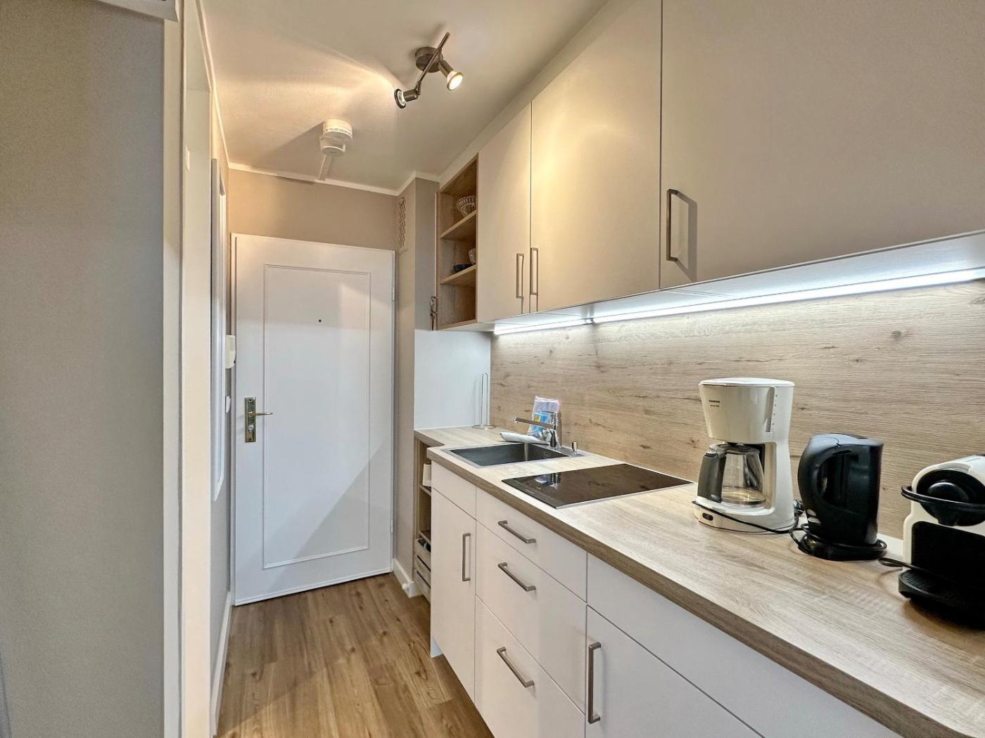 This apartment features a living room and a fully equipped kitchenette.