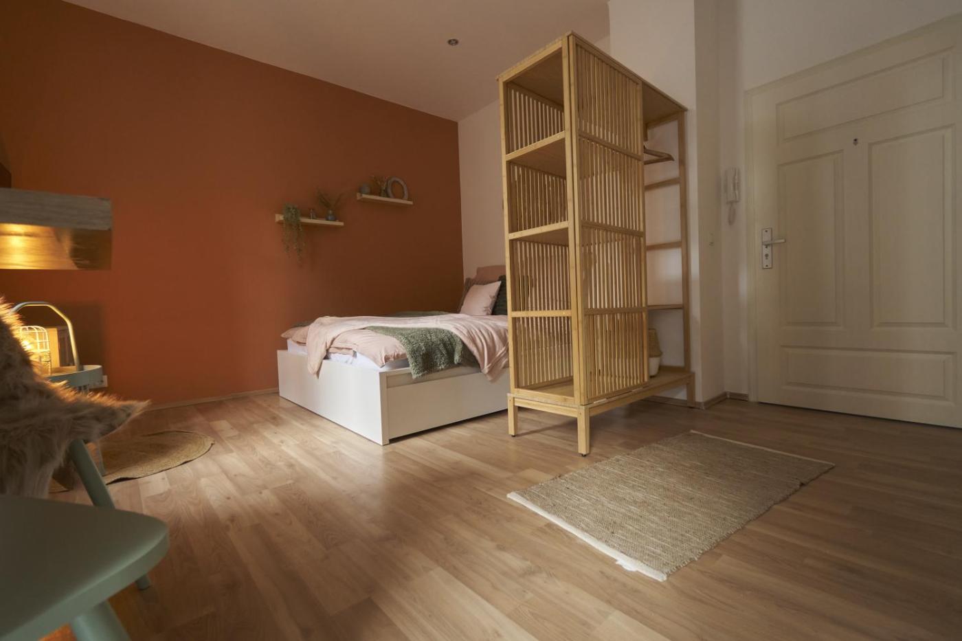 One-Bedroom Apartment. Featuring a private entrance, this apartment consists of a kitchen, 1 bedroom and 1 bathroom with a shower and a hairdryer. Guests can make meals in the kitchen that is equipped with a stovetop, a refrigerator, kitchenware and an oven. Boasting a terrace with garden views, this apartment also provides a washing machine and a flat-screen TV with streaming services. The unit offers 1 bed.